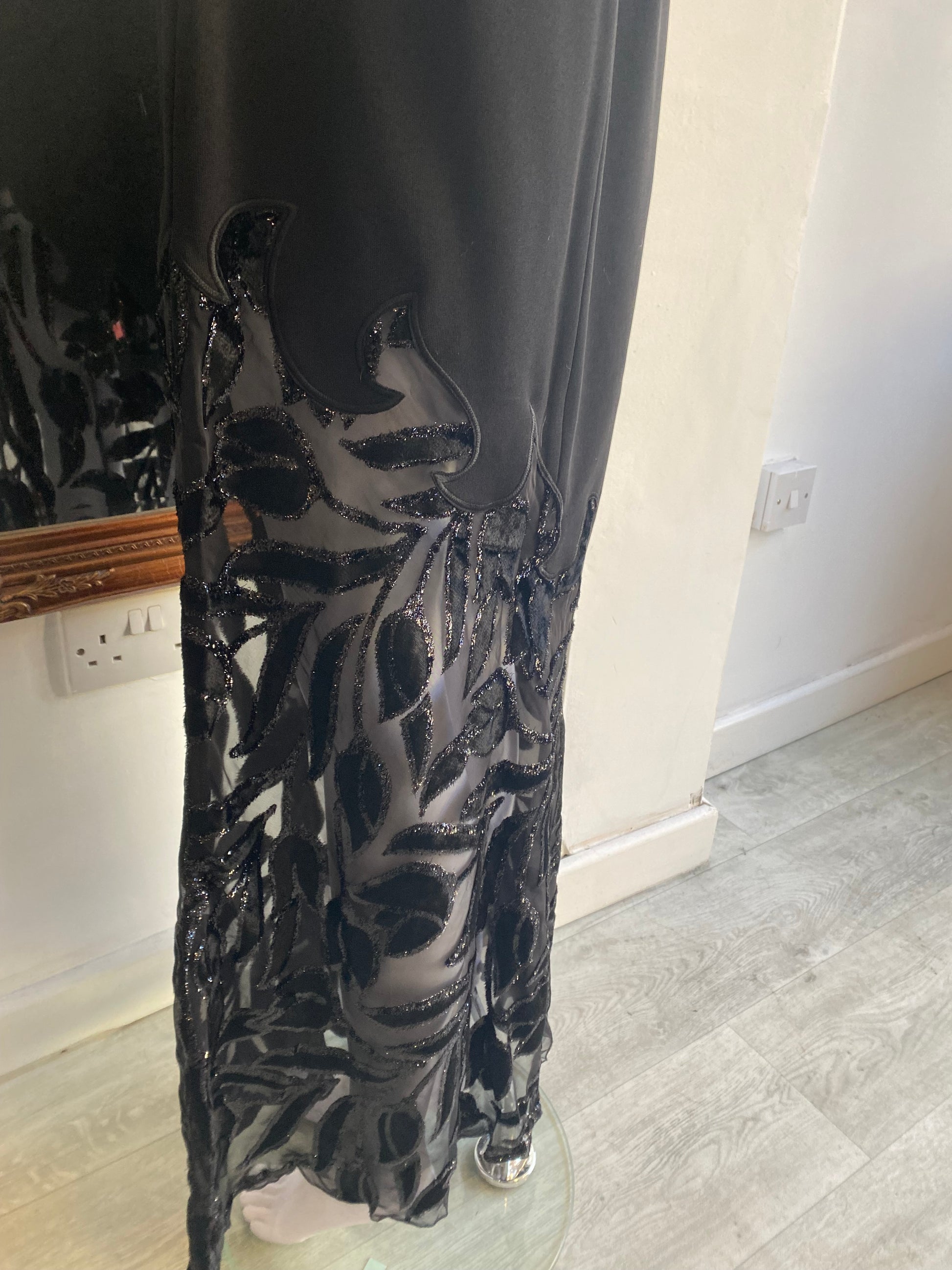 Joseph Ribkoff Black Dress with Asymmetric Mesh Panel Size 10