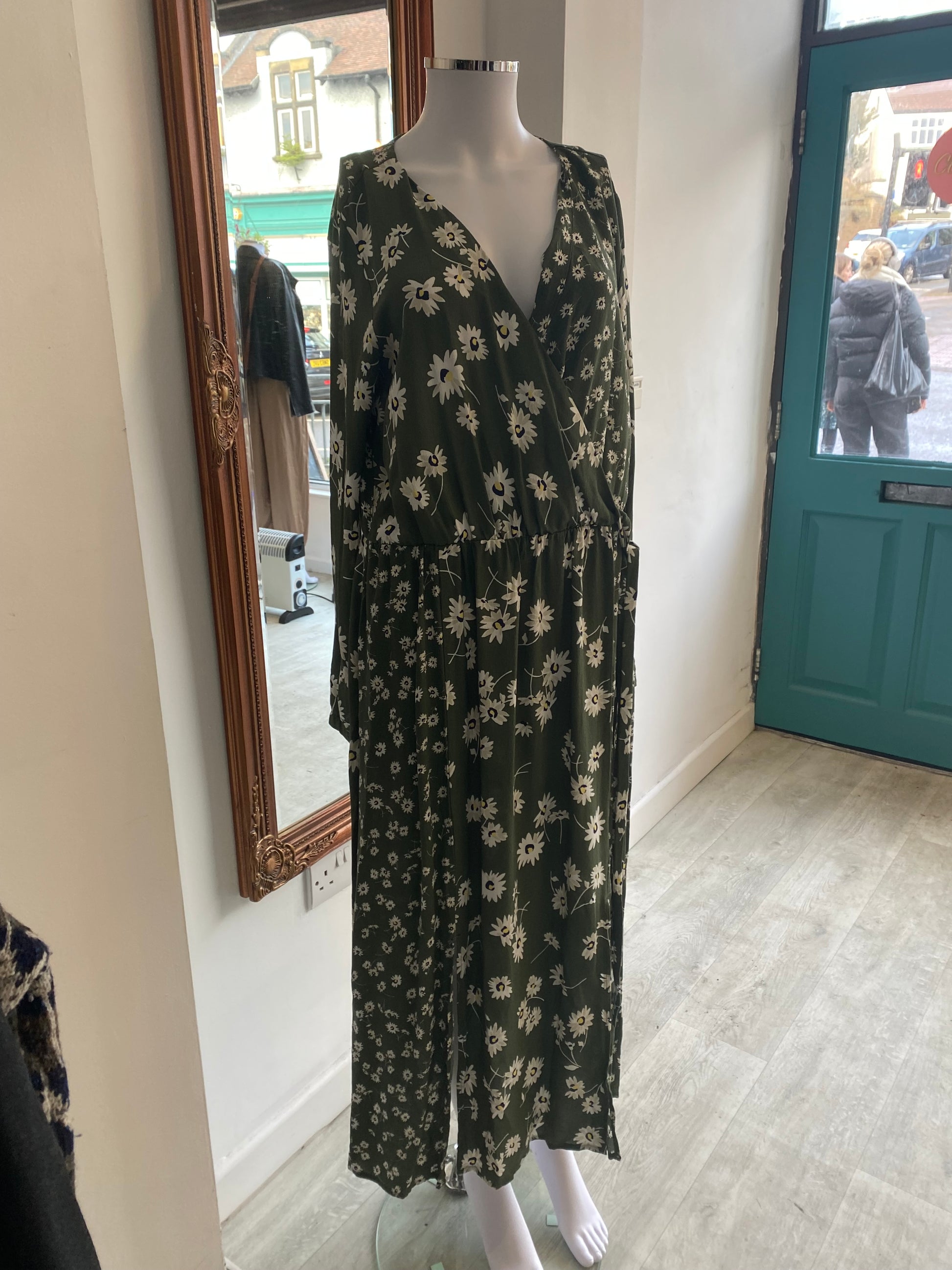Joules Green Floral Print Long Dress Size 14