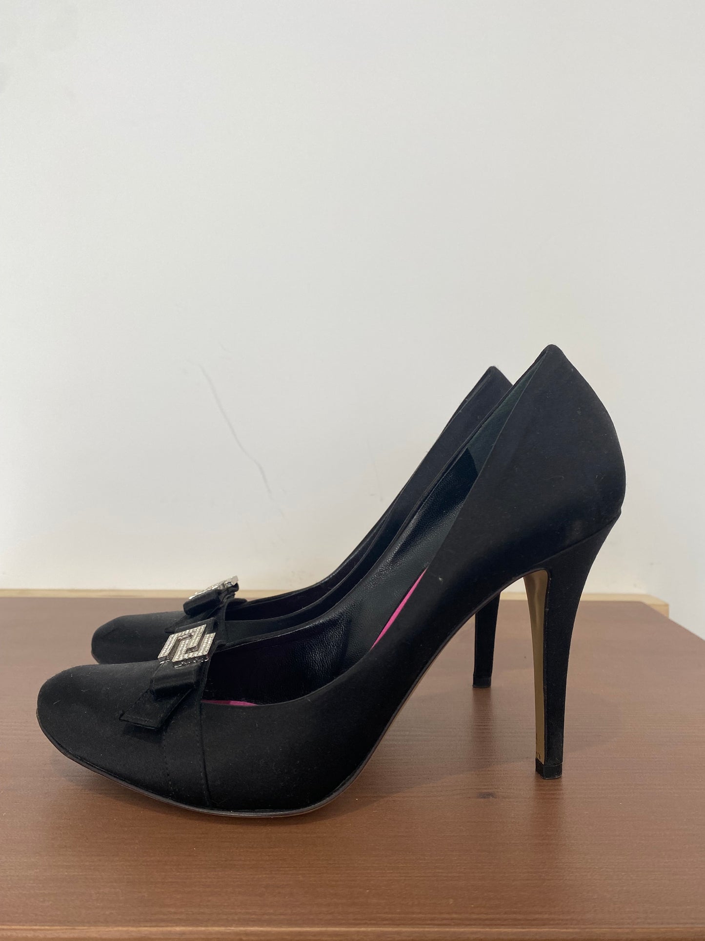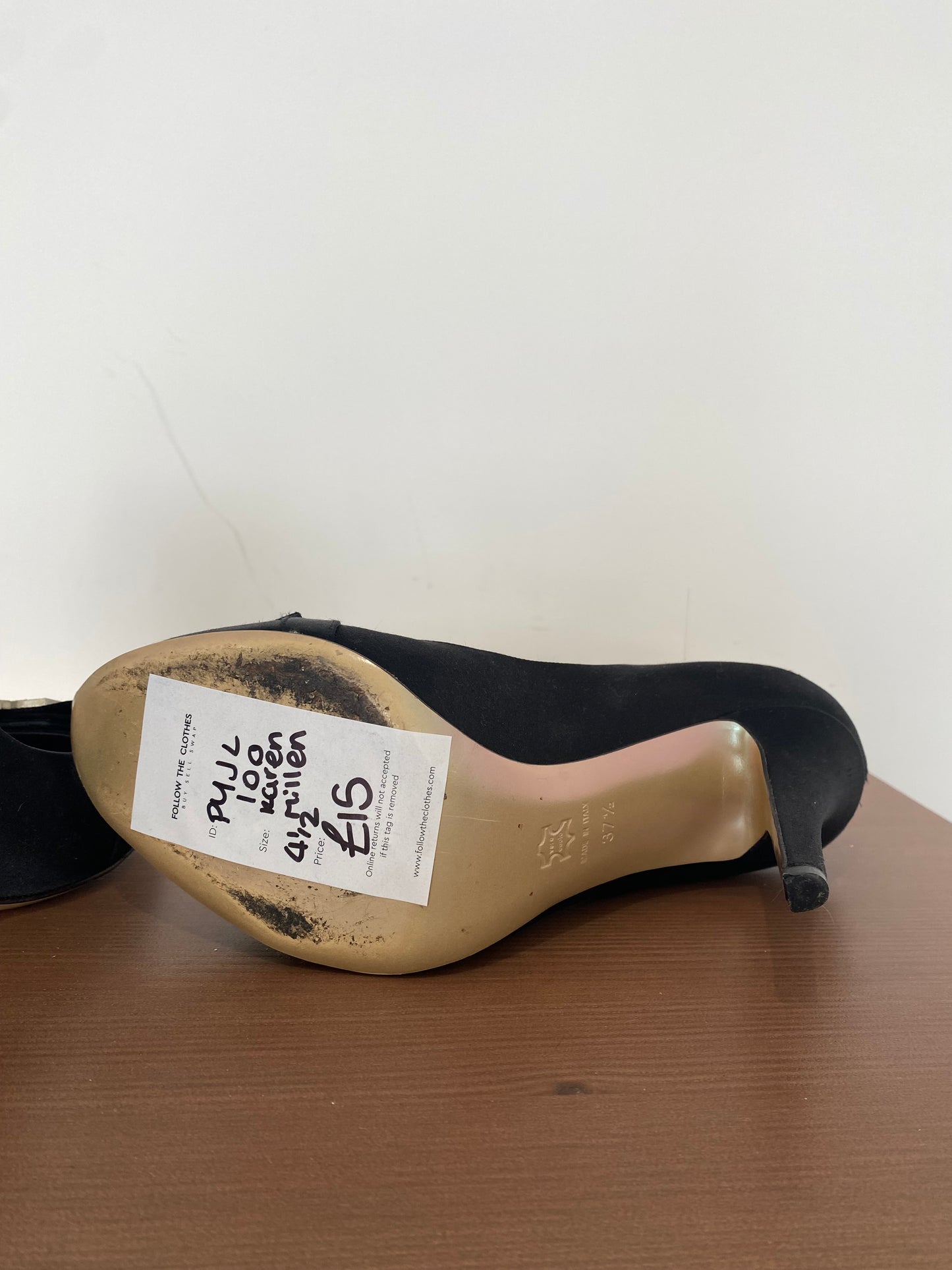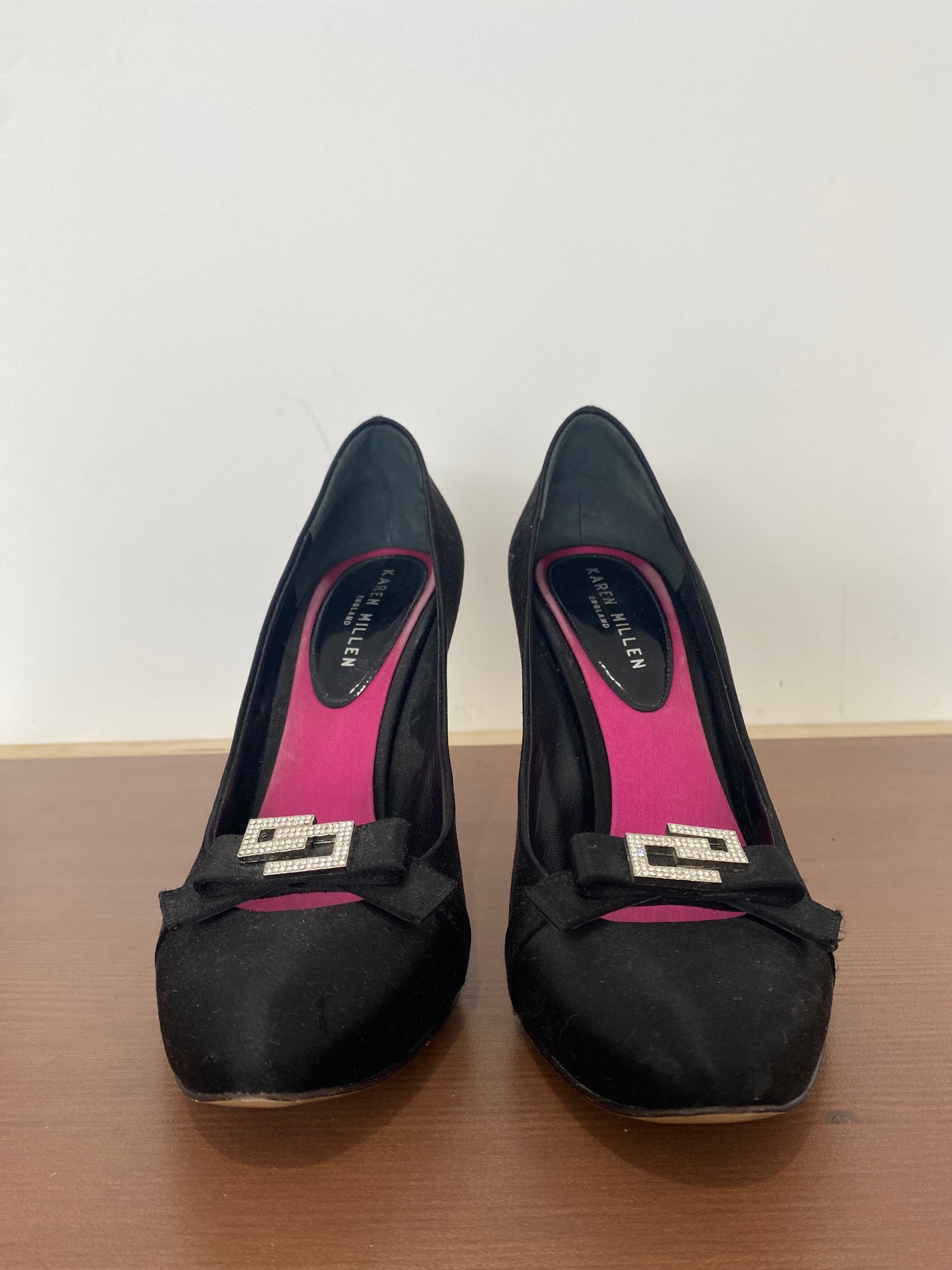 Karen Millen Black Fabric Shoes with Diamanté Detailing Size 4