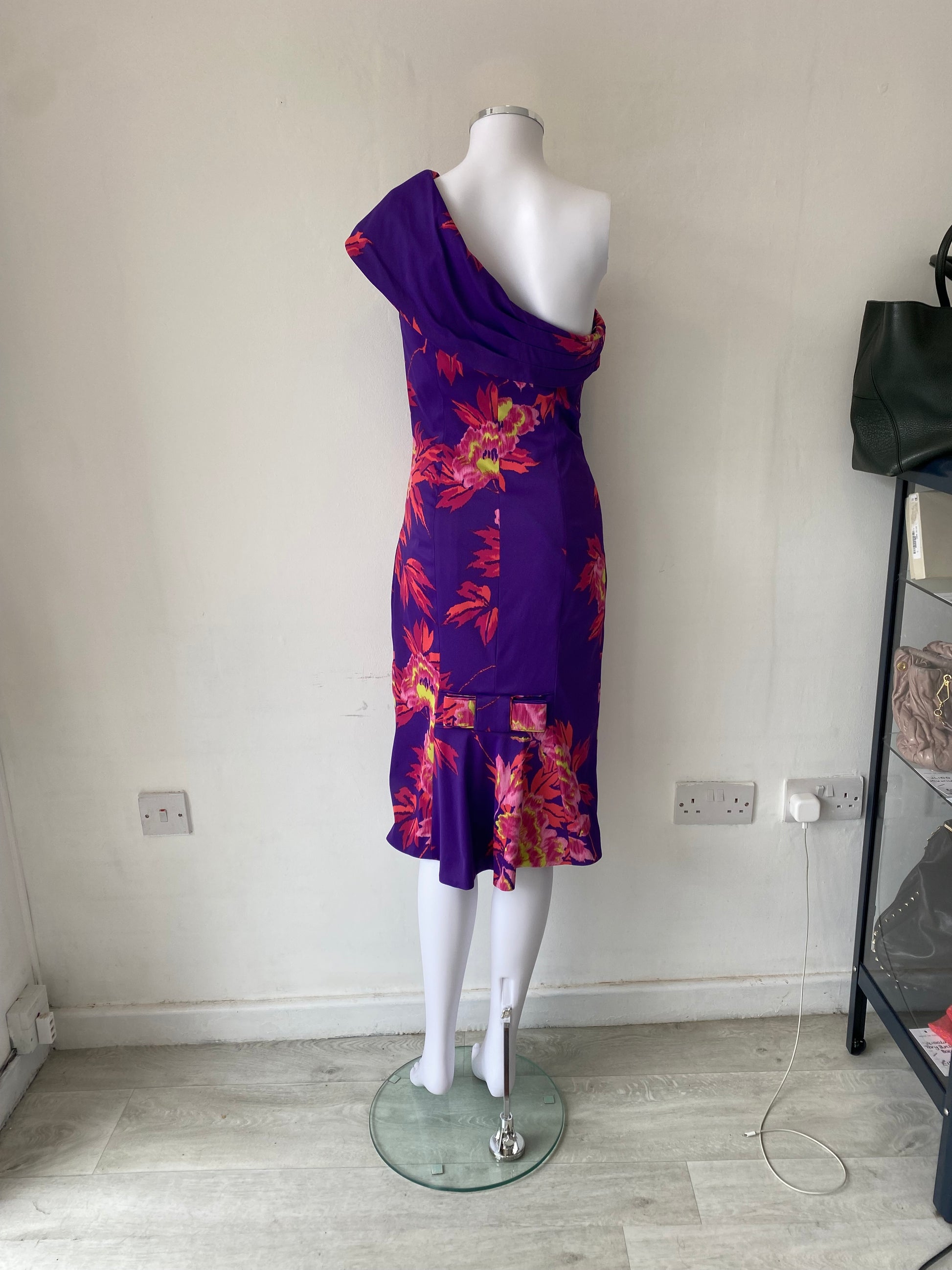 Karen Millen Purple Silk Feel Off Shoulder Dress Size 8-10