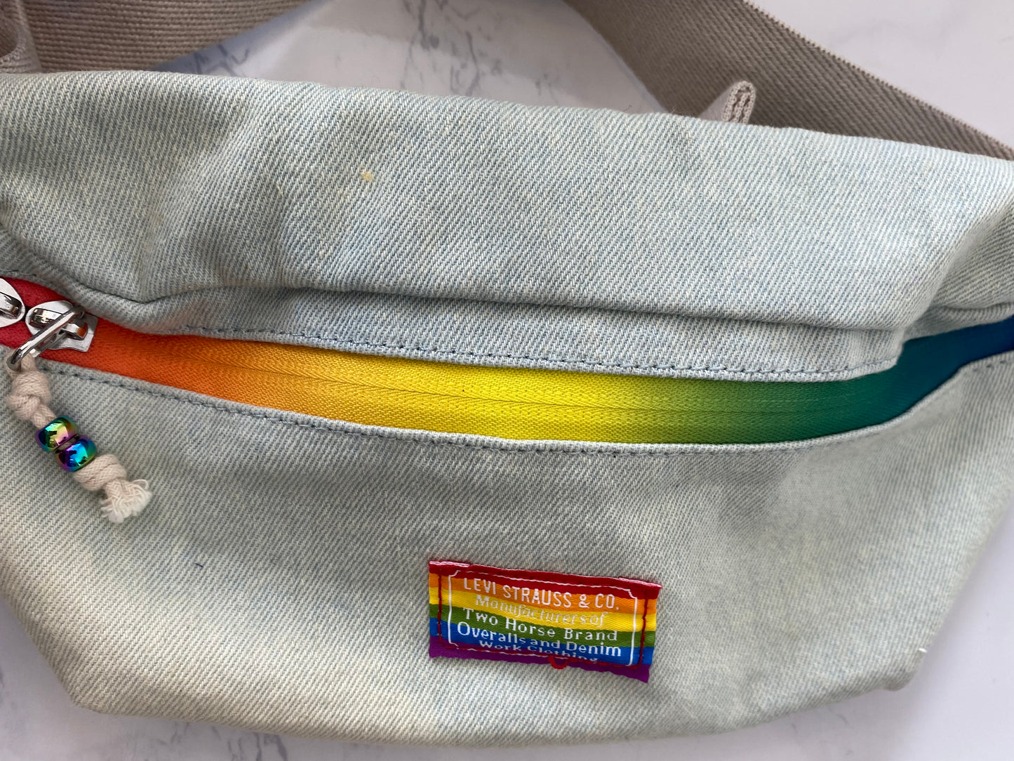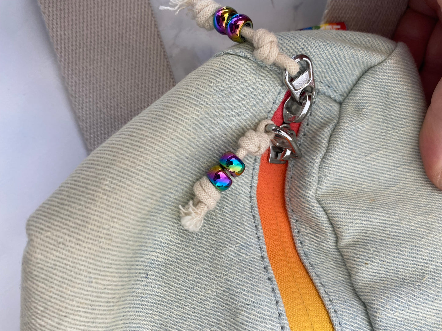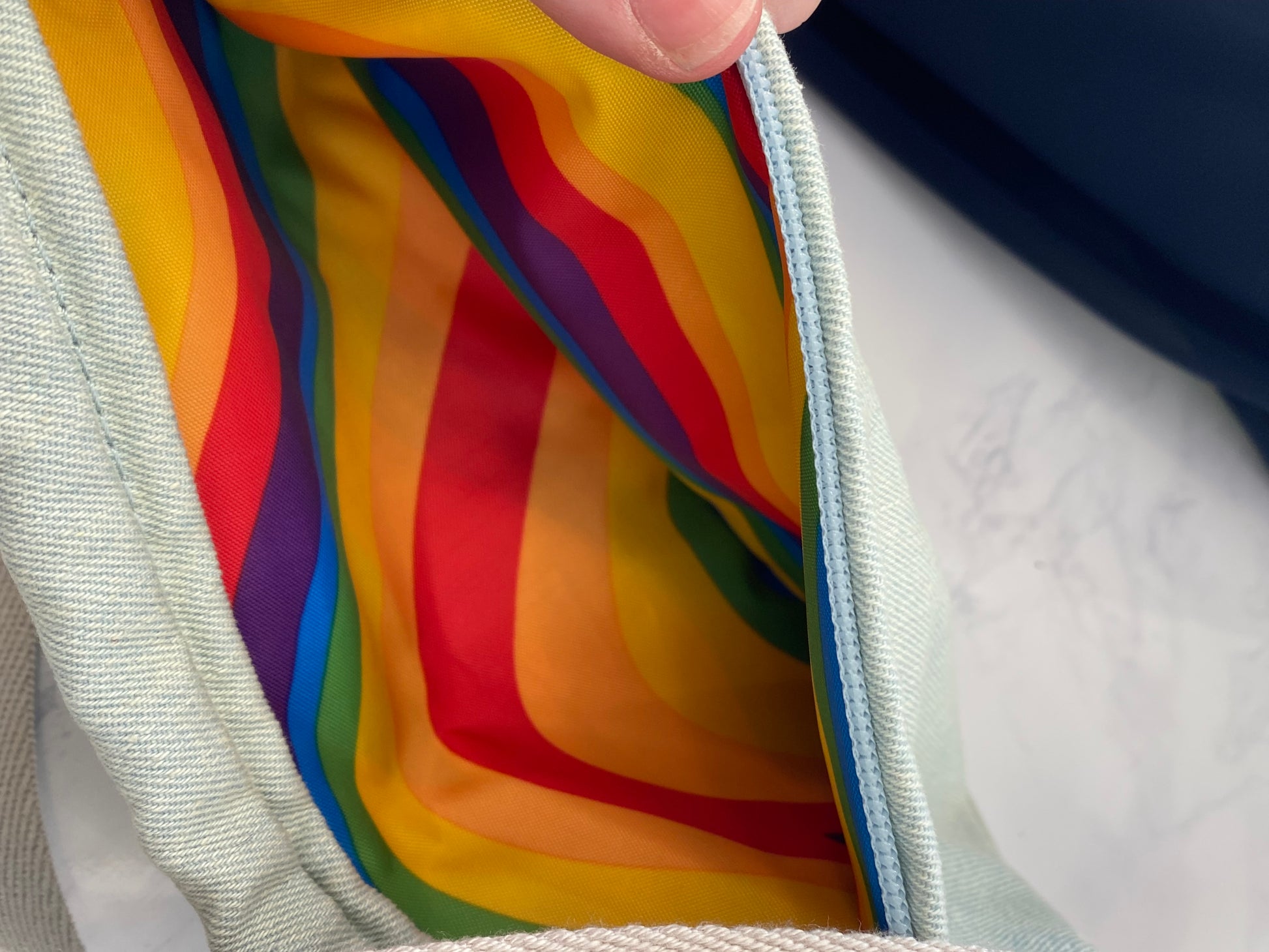 Lovely bag, in good condition aside from a very small mark. Has rainbow detailing throughout. In clean condition inside.