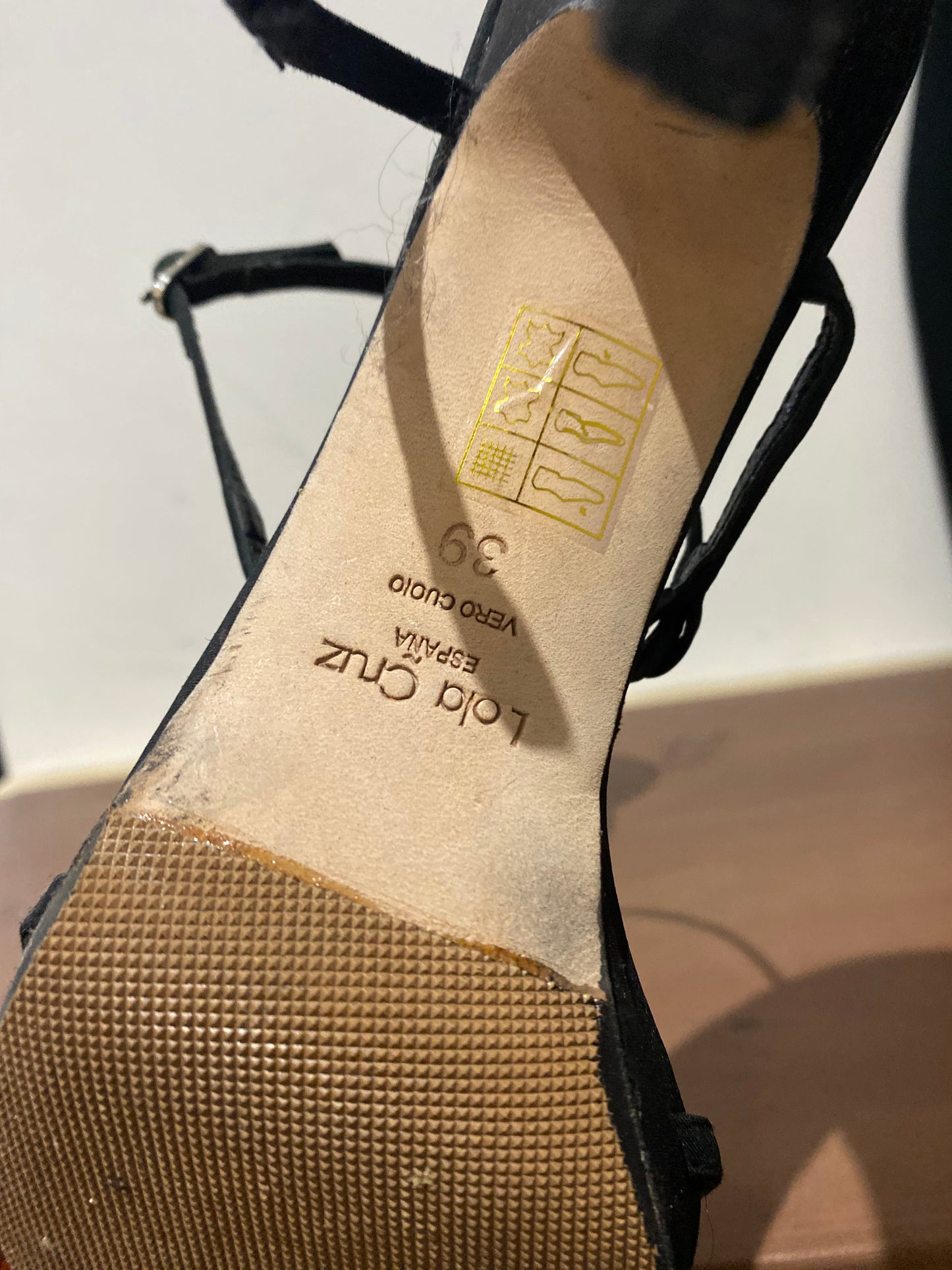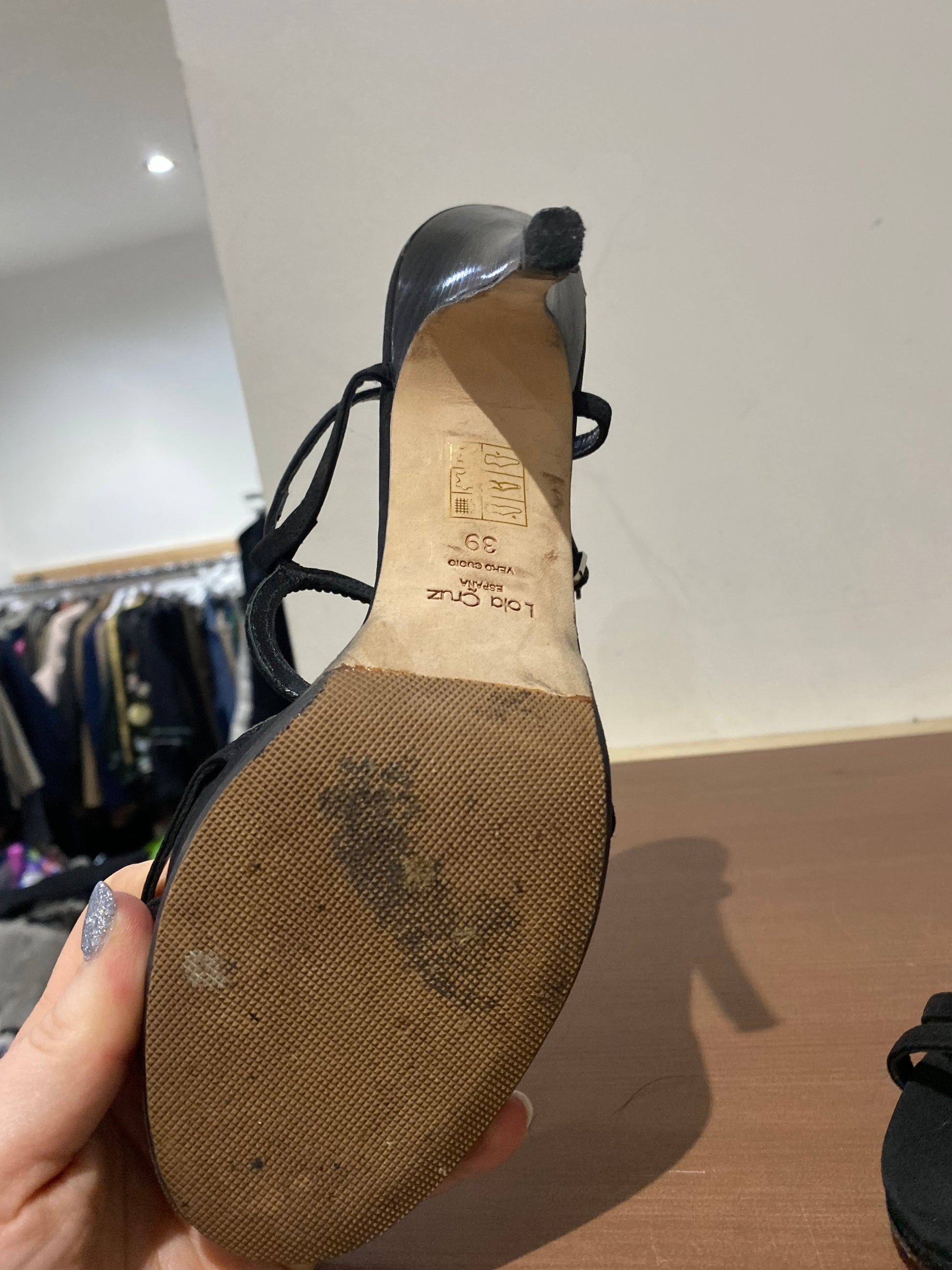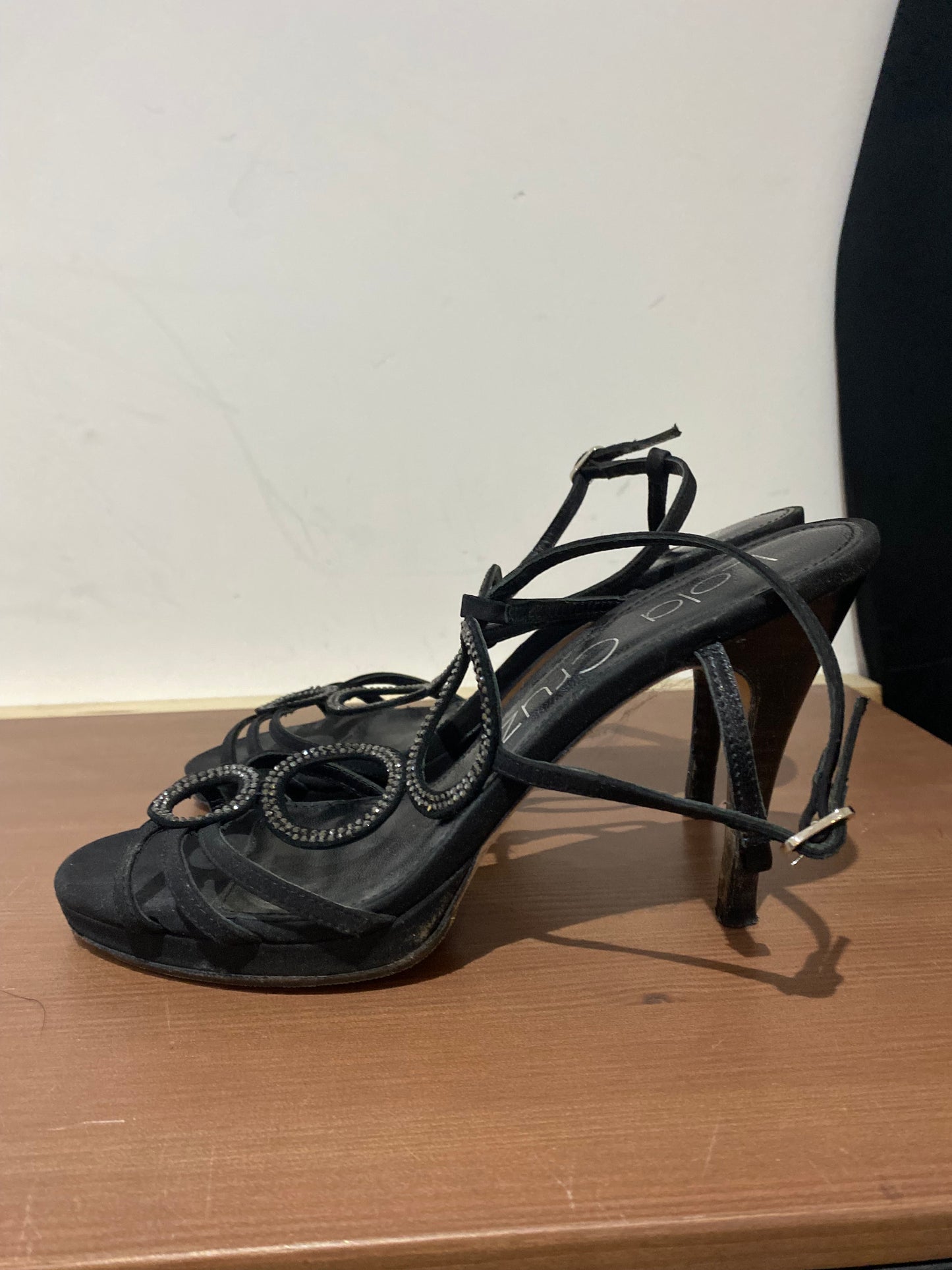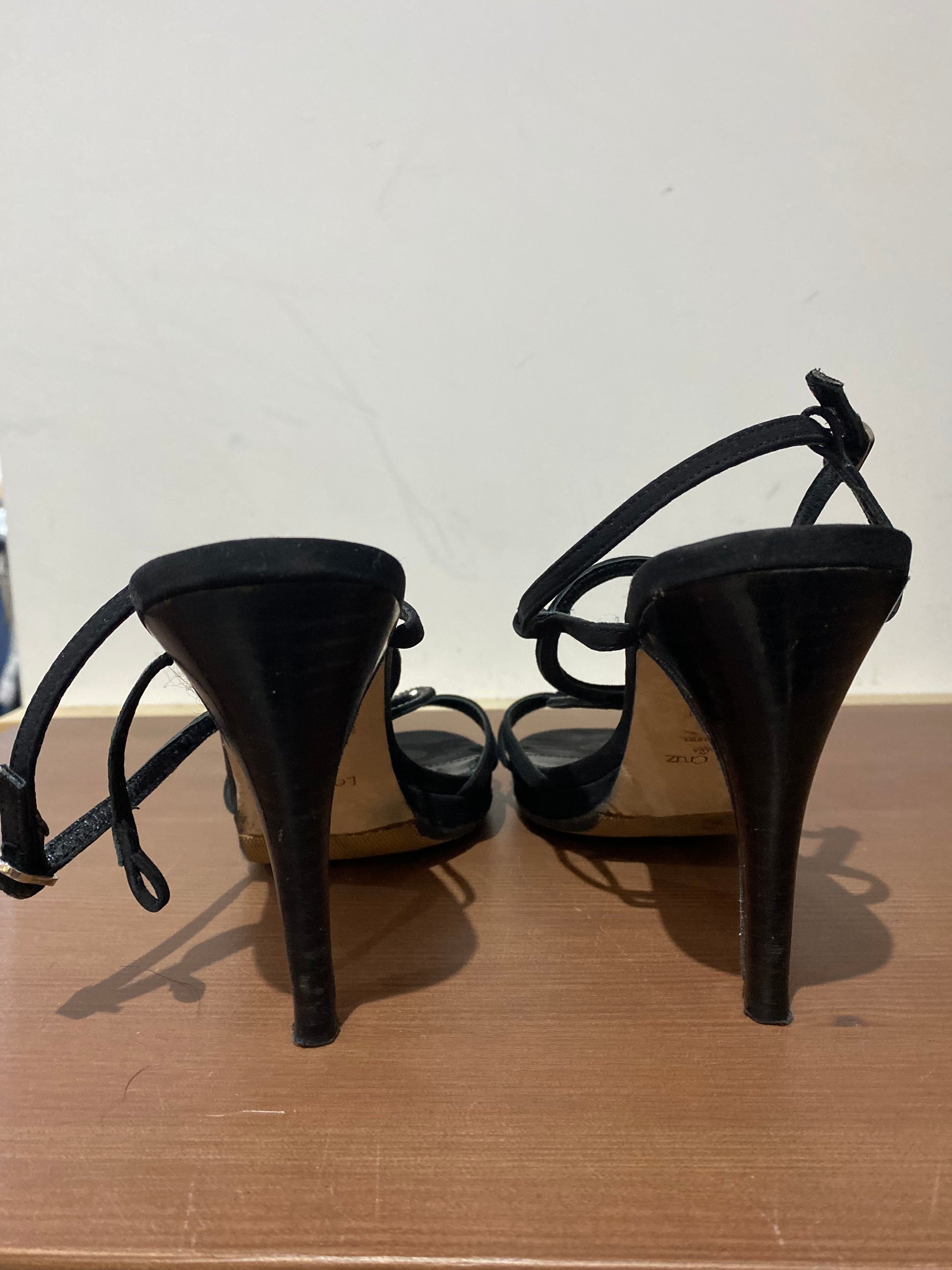 Lola Cruz Black Fabric Heeled Sandals with Diamante Circles Size 6