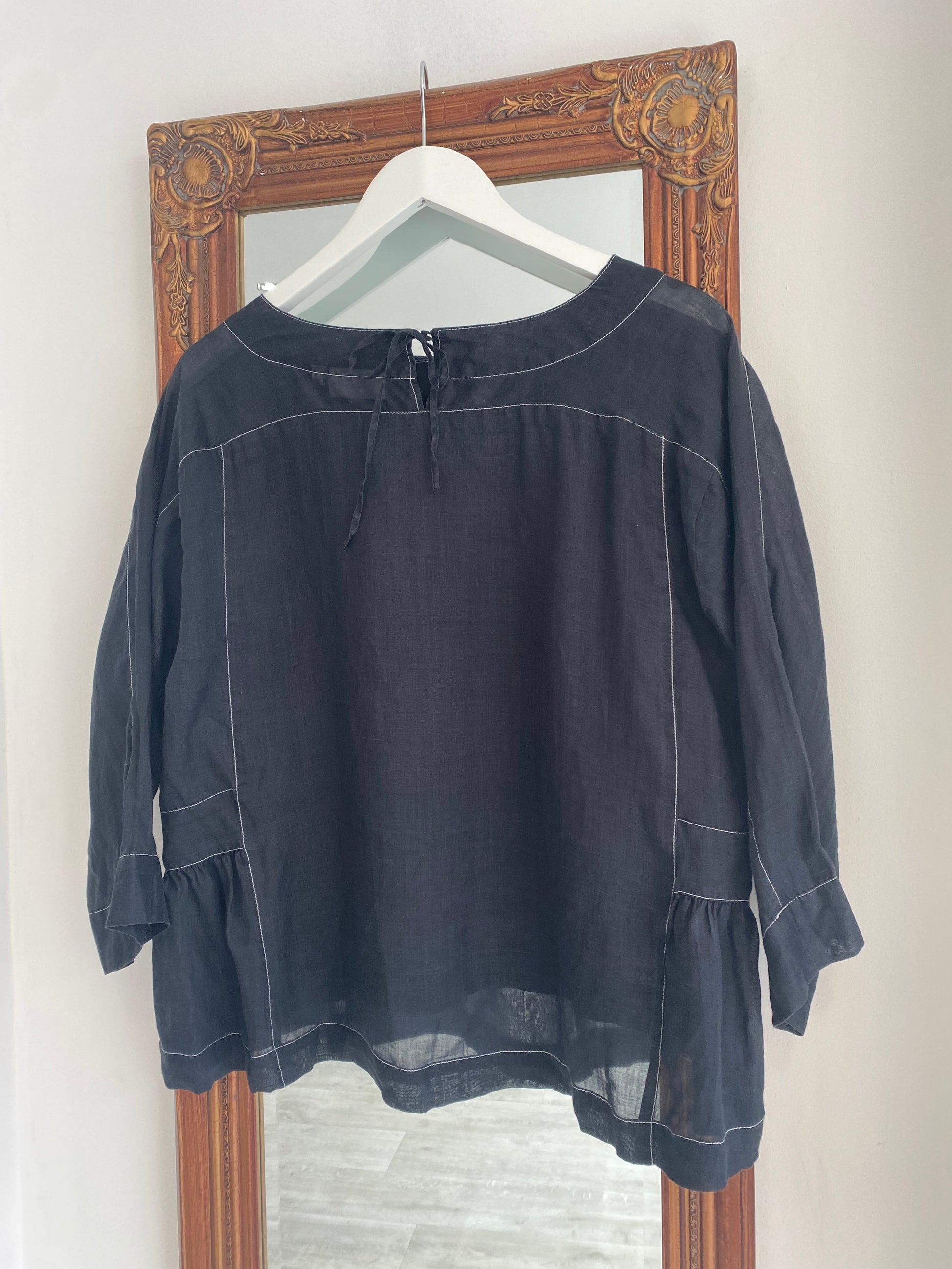 This top is a very loose fit, it is sheer. It is a size 12-14
