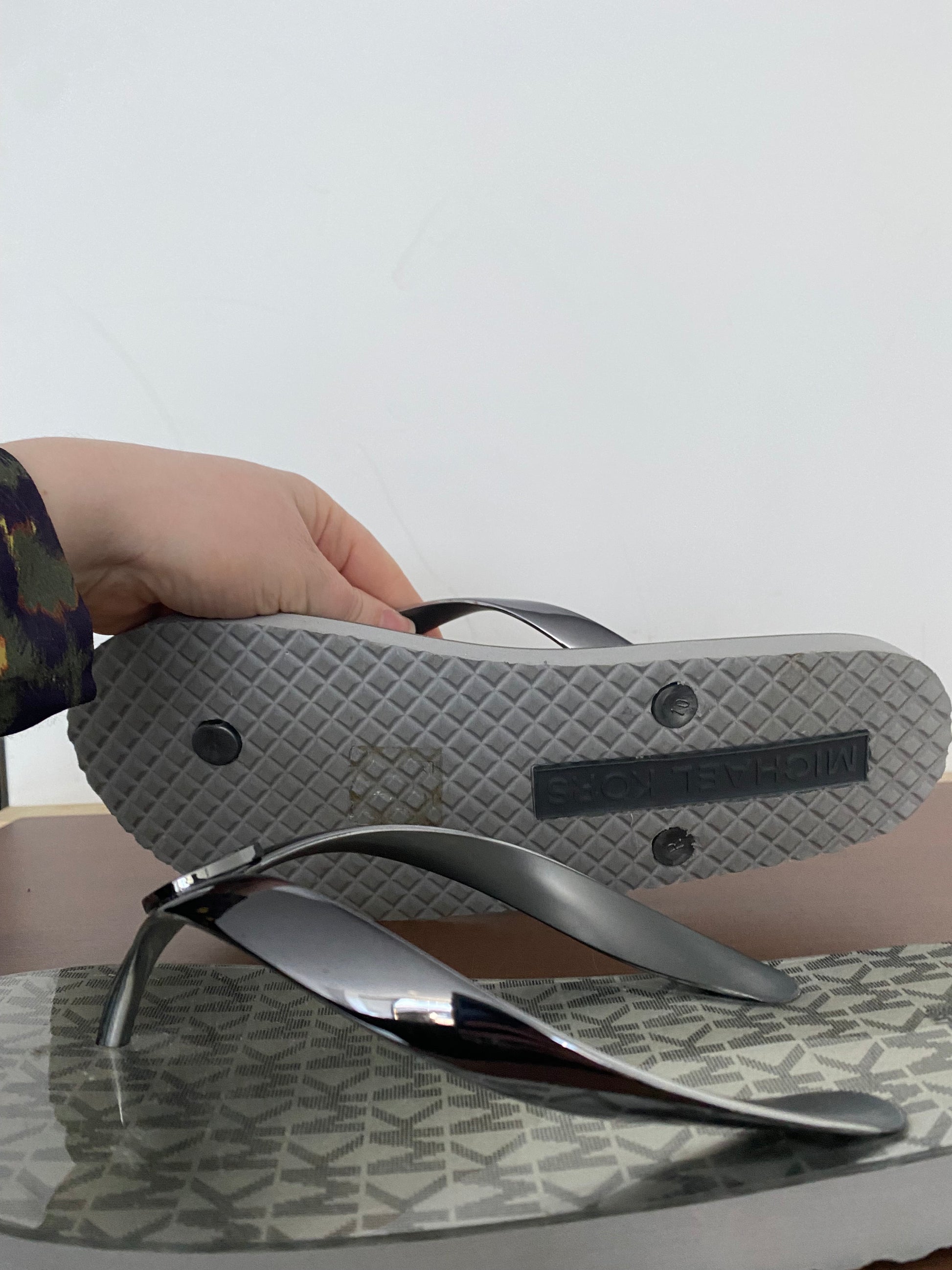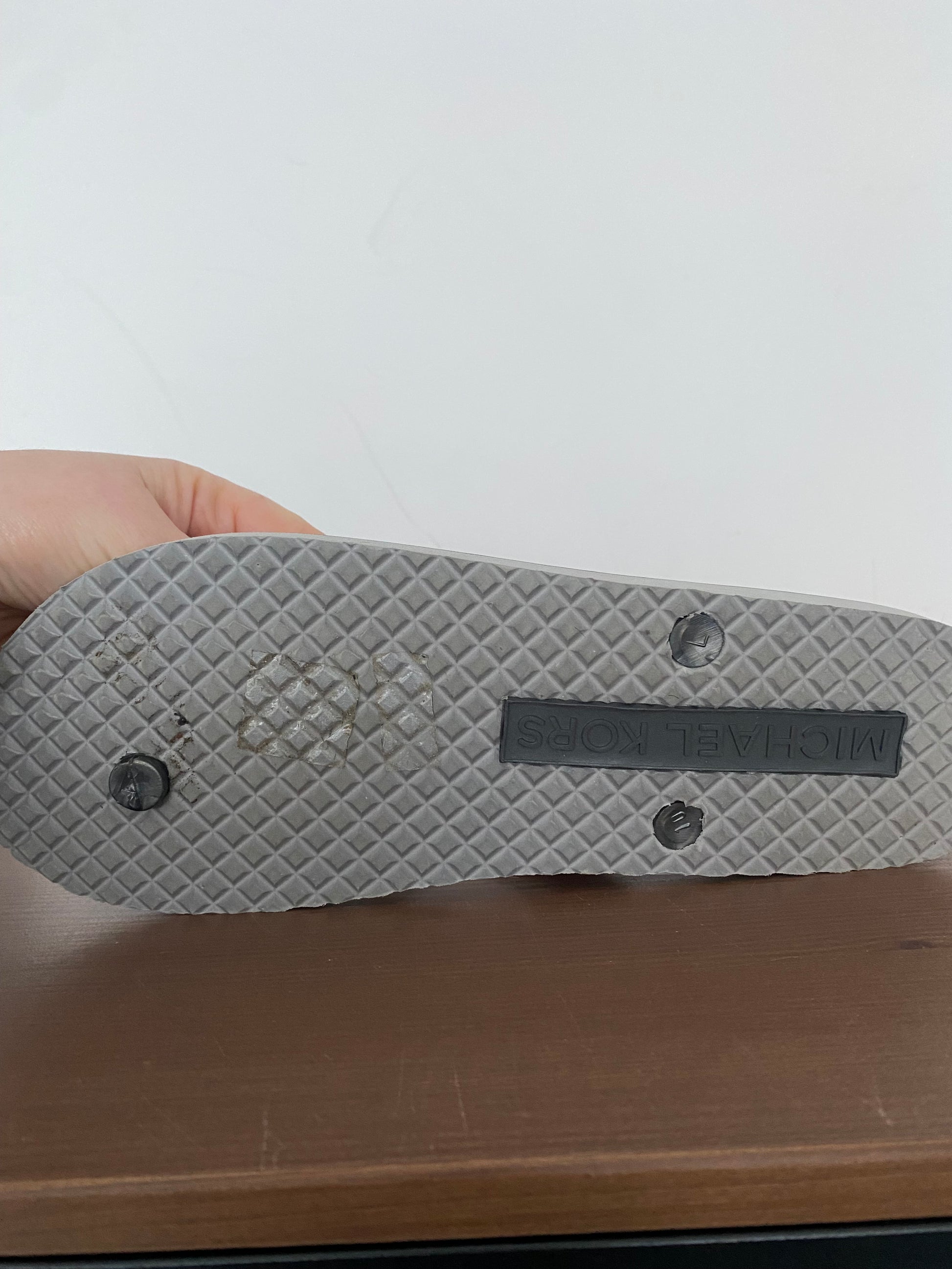 Michael Kors Grey Logo Flip Flops Size Large 6