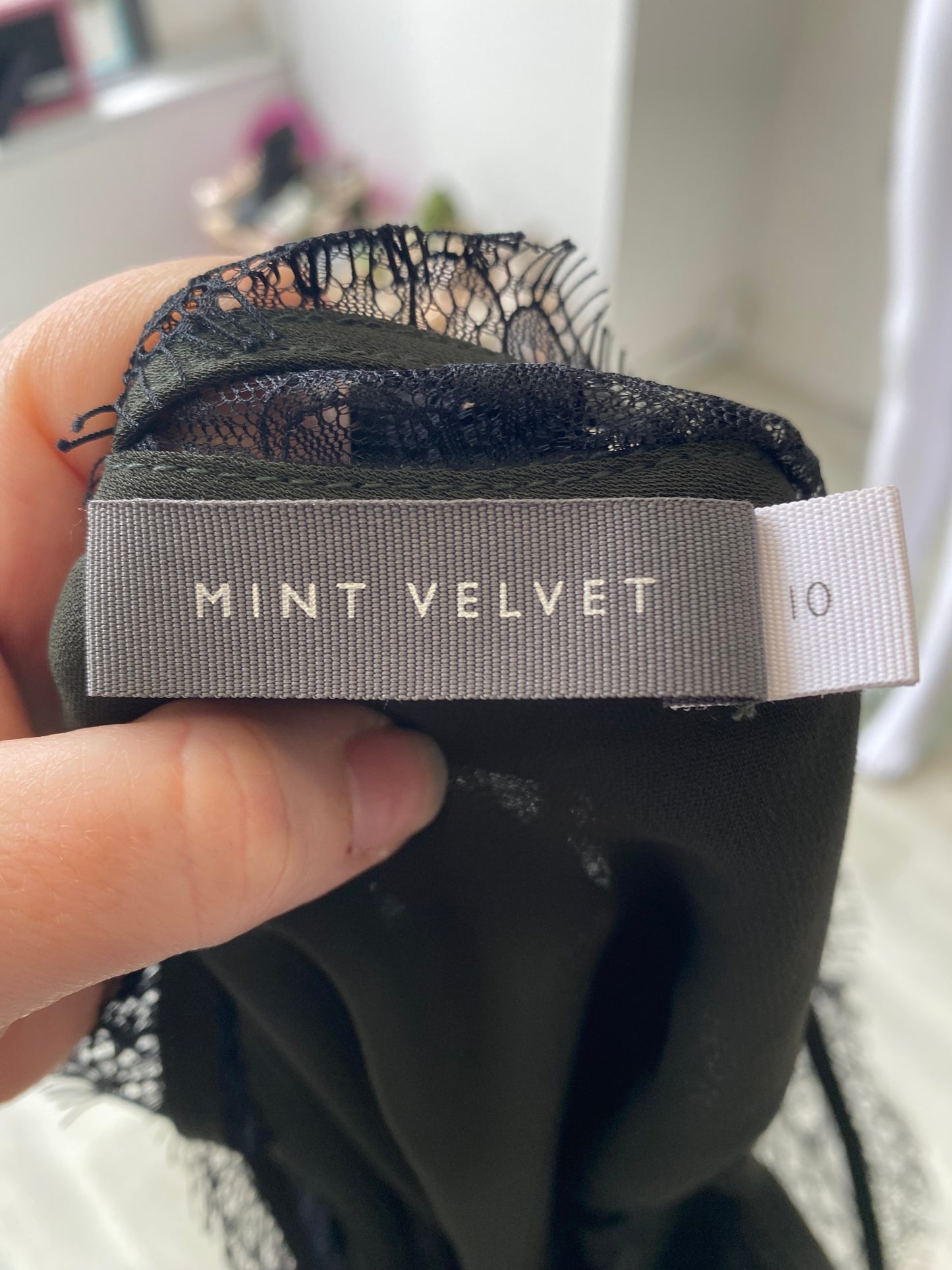 Mint Velvet Forest Green Top with Lace Detail Size 10