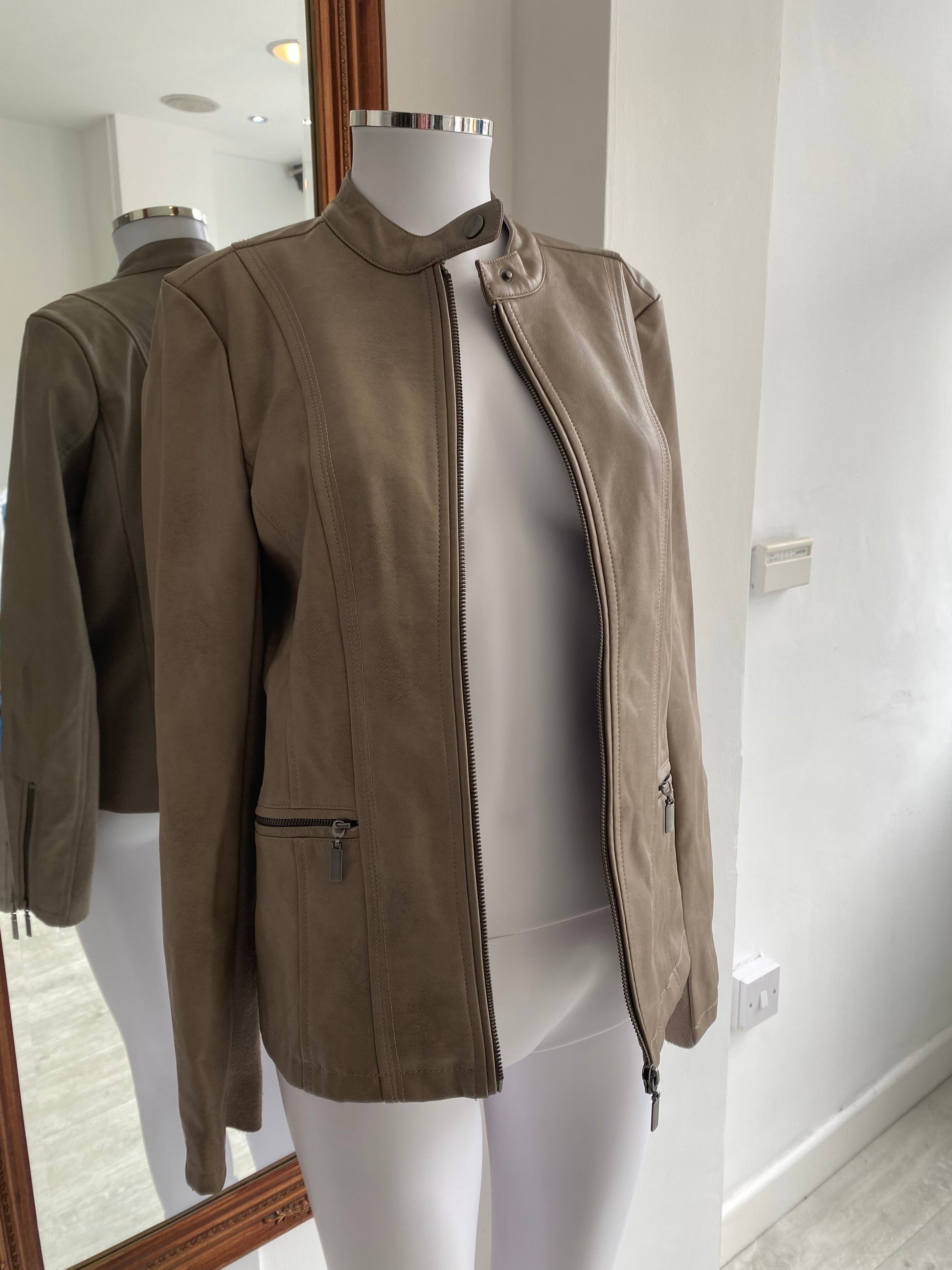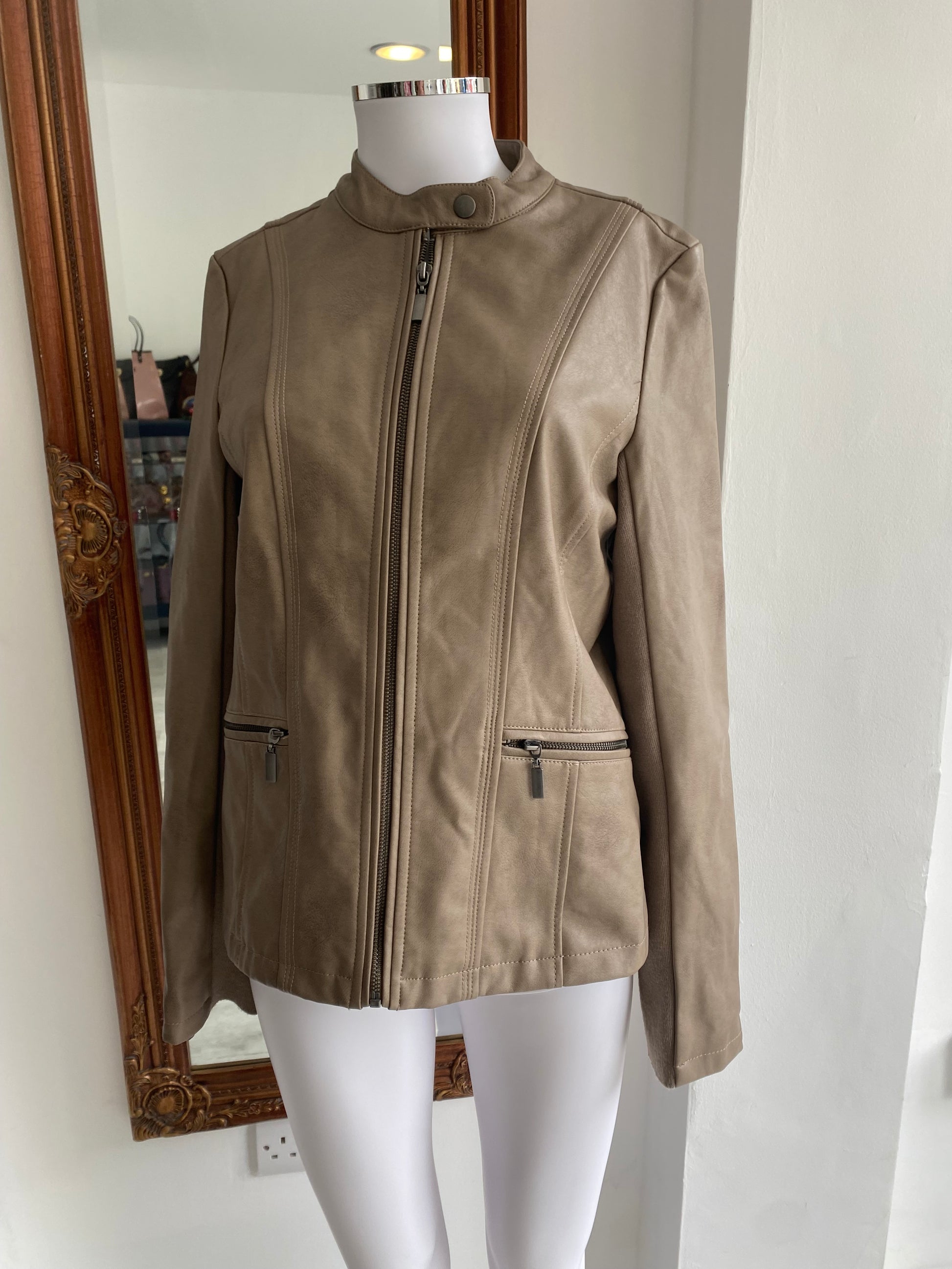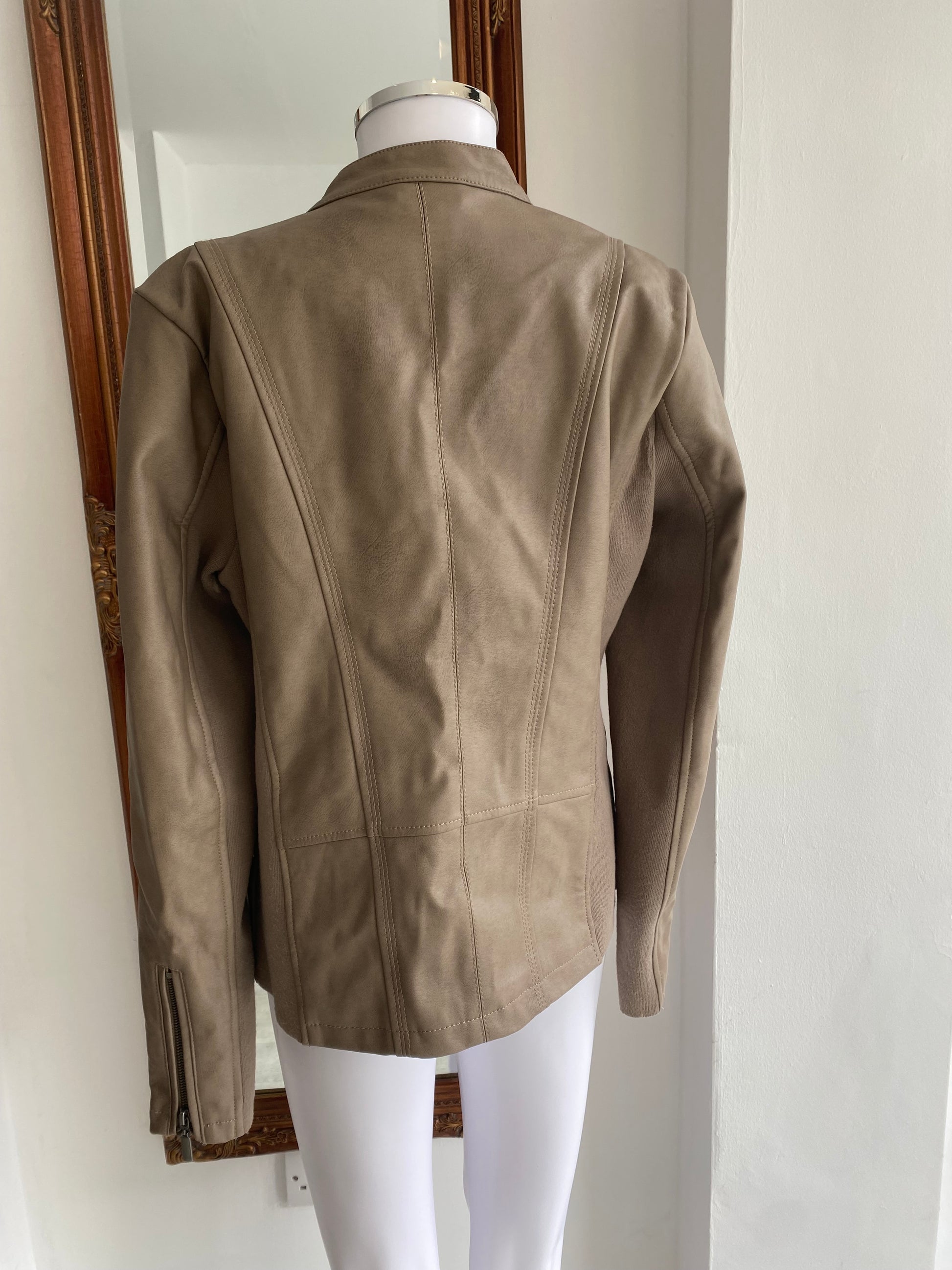 Mo Ka Sante Fe Faux Leather Beige Jacket Size 8