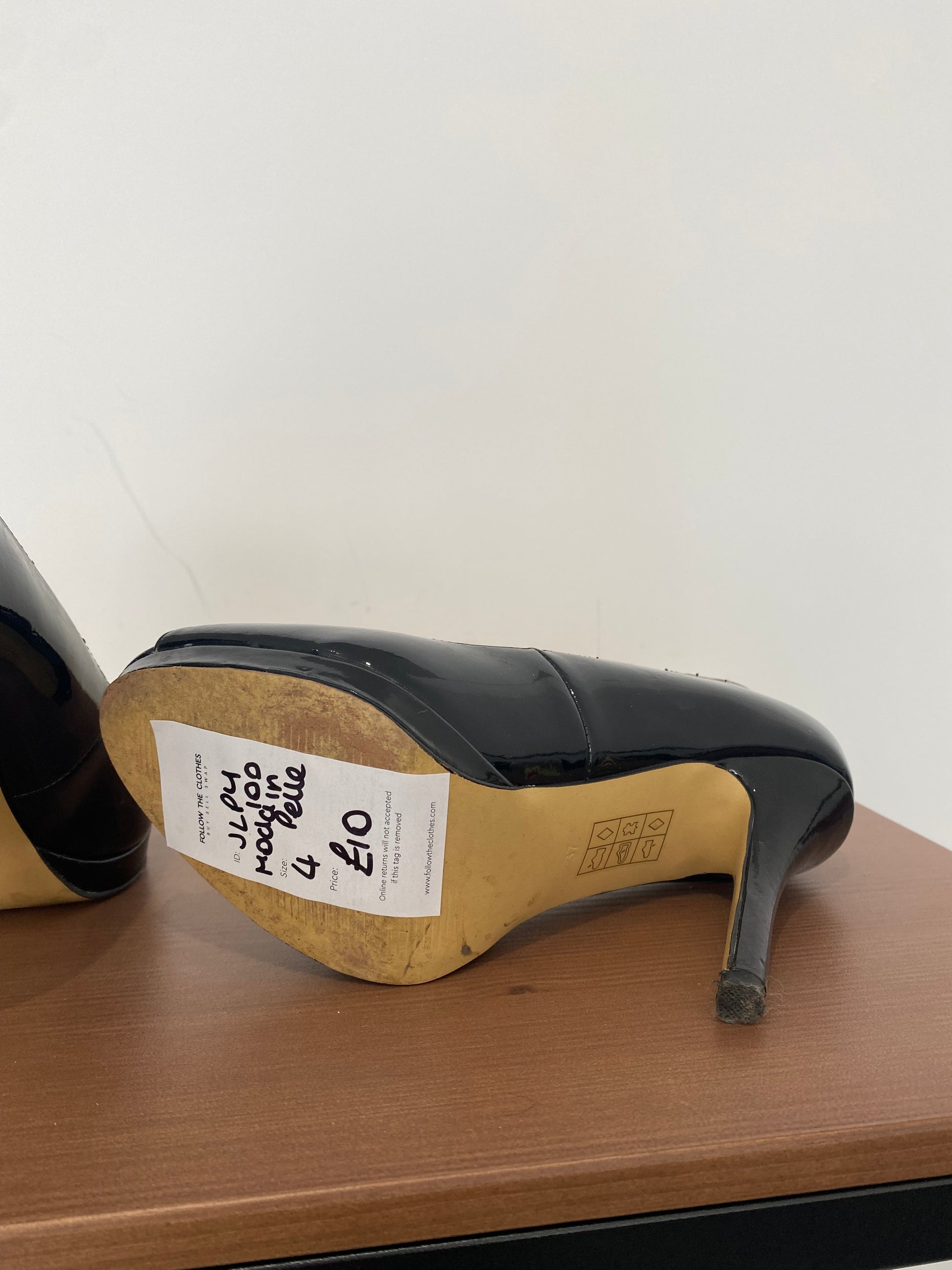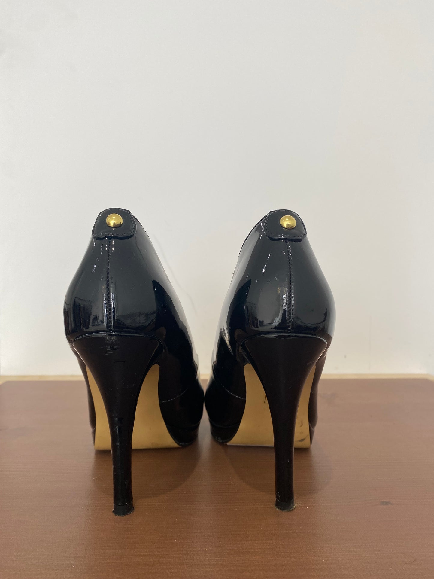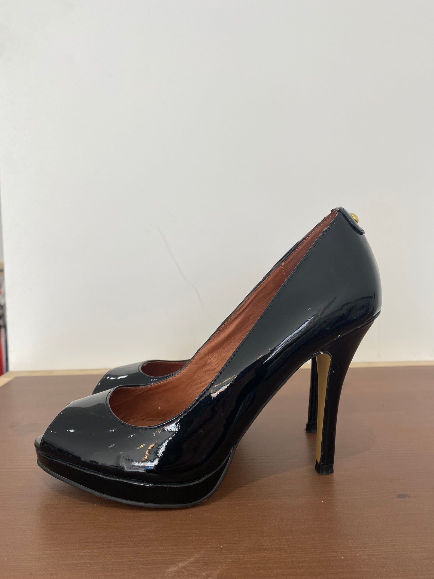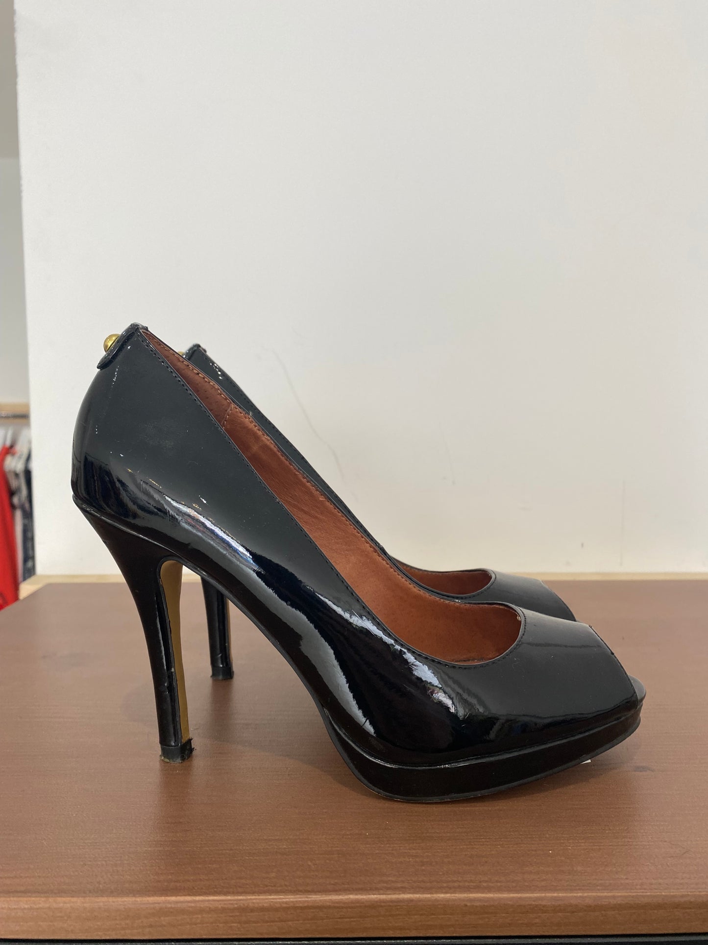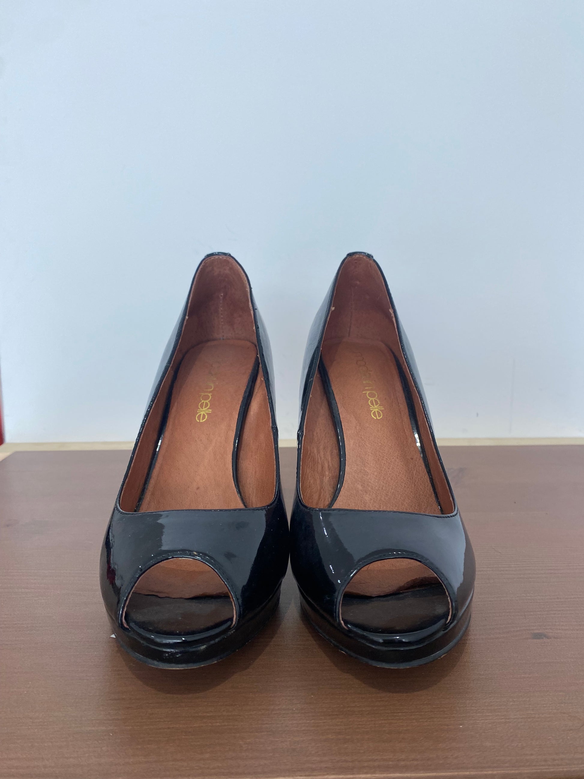 Moda In Pelle Black Patent Peep Toe Shoes Size 4