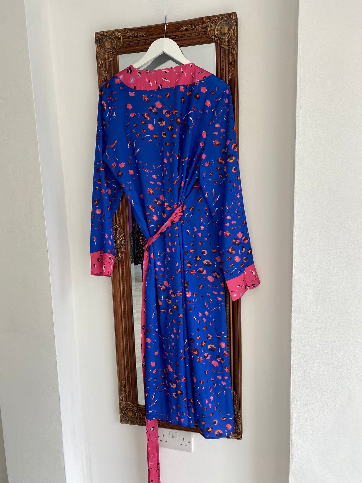 Never Fully Dressed Blue and Pink Leopard Print Wrap Dress Size 16
