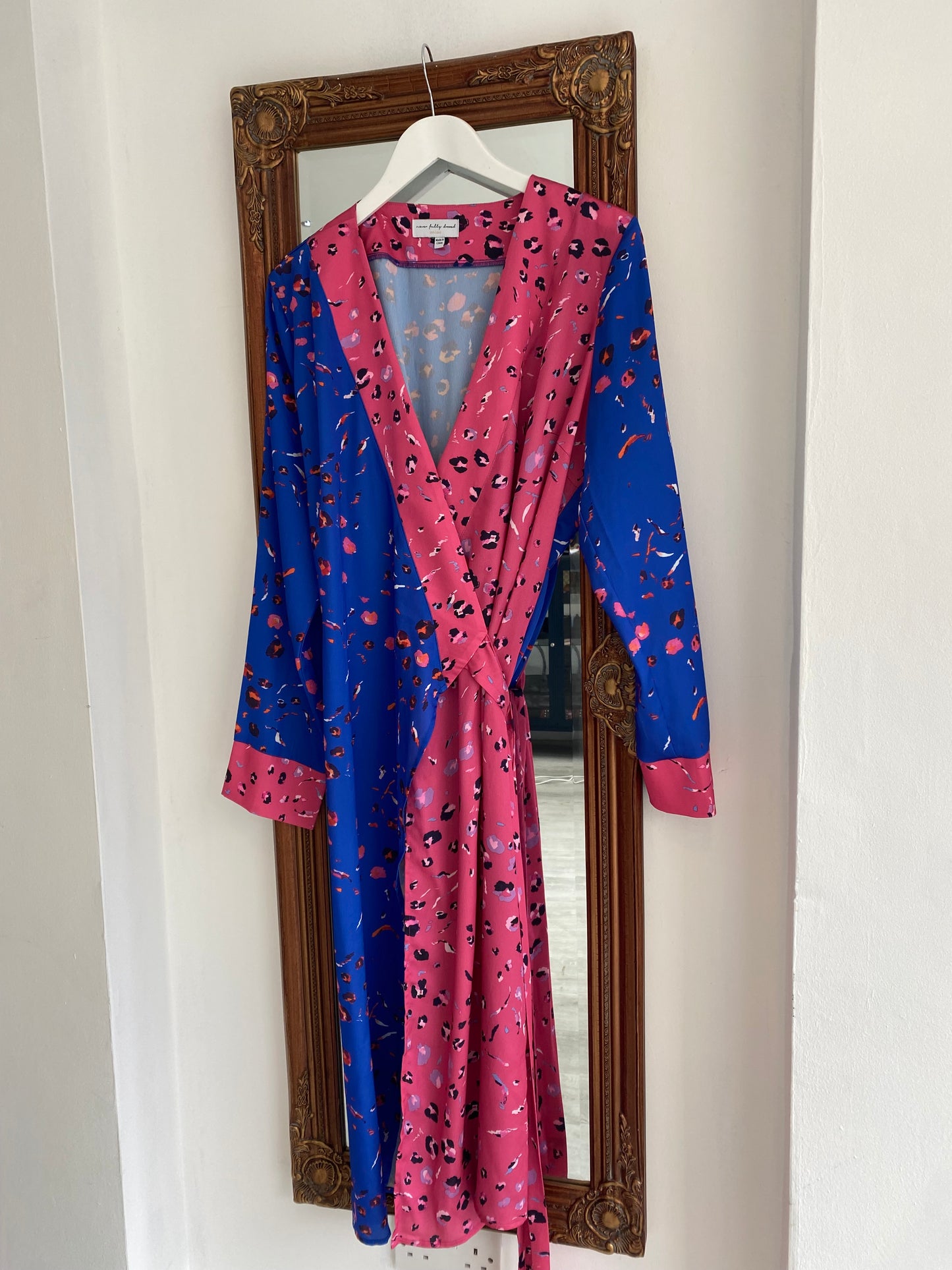 This dress is so beautiful, stunning colours for summer. It is a wrap dress style.