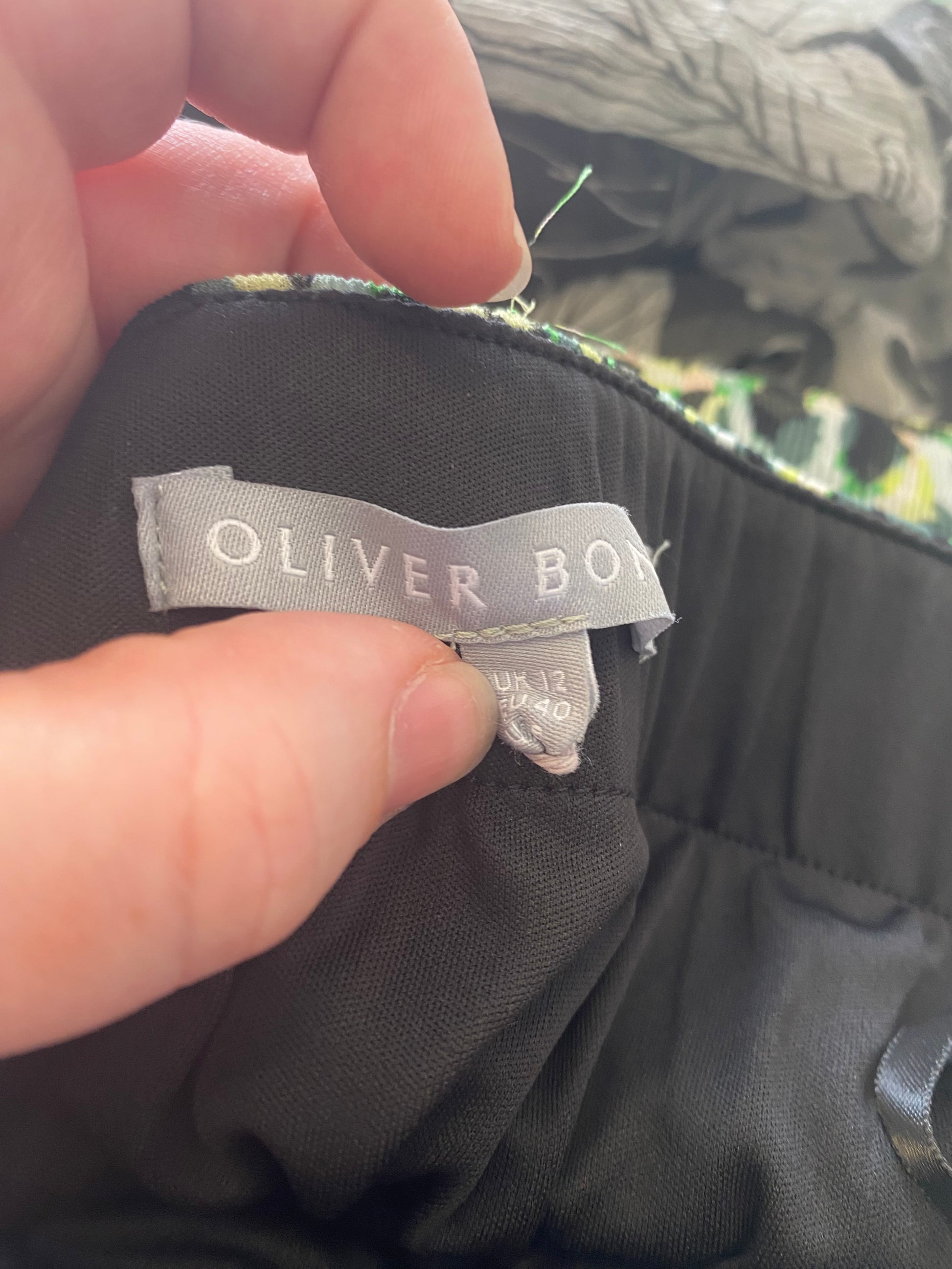 Oliver Bonas Green Patterned Midi Skirt Size 12