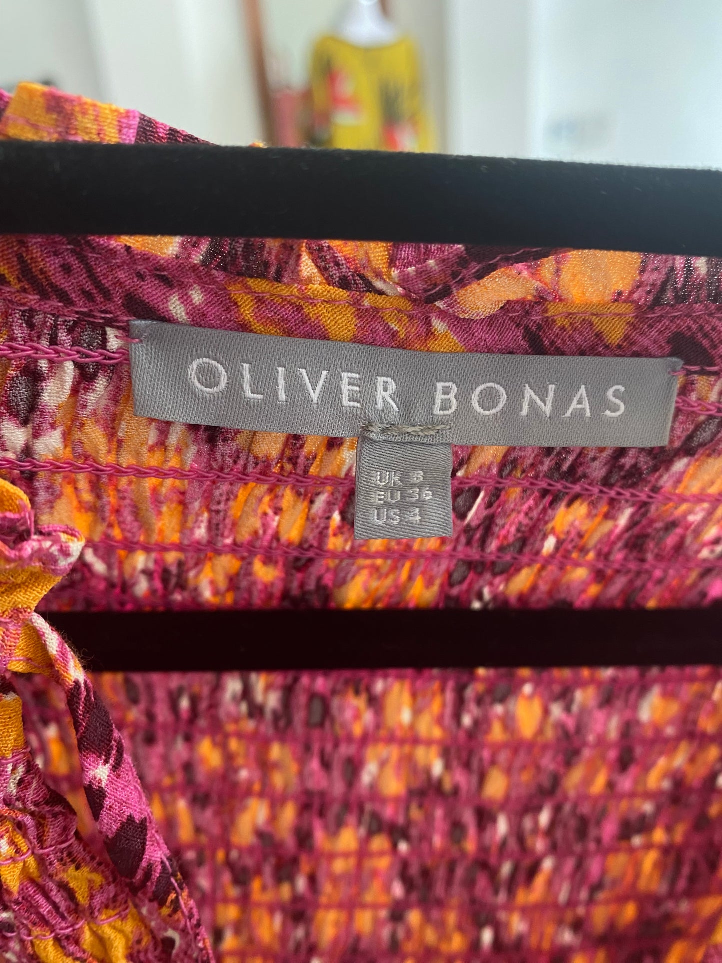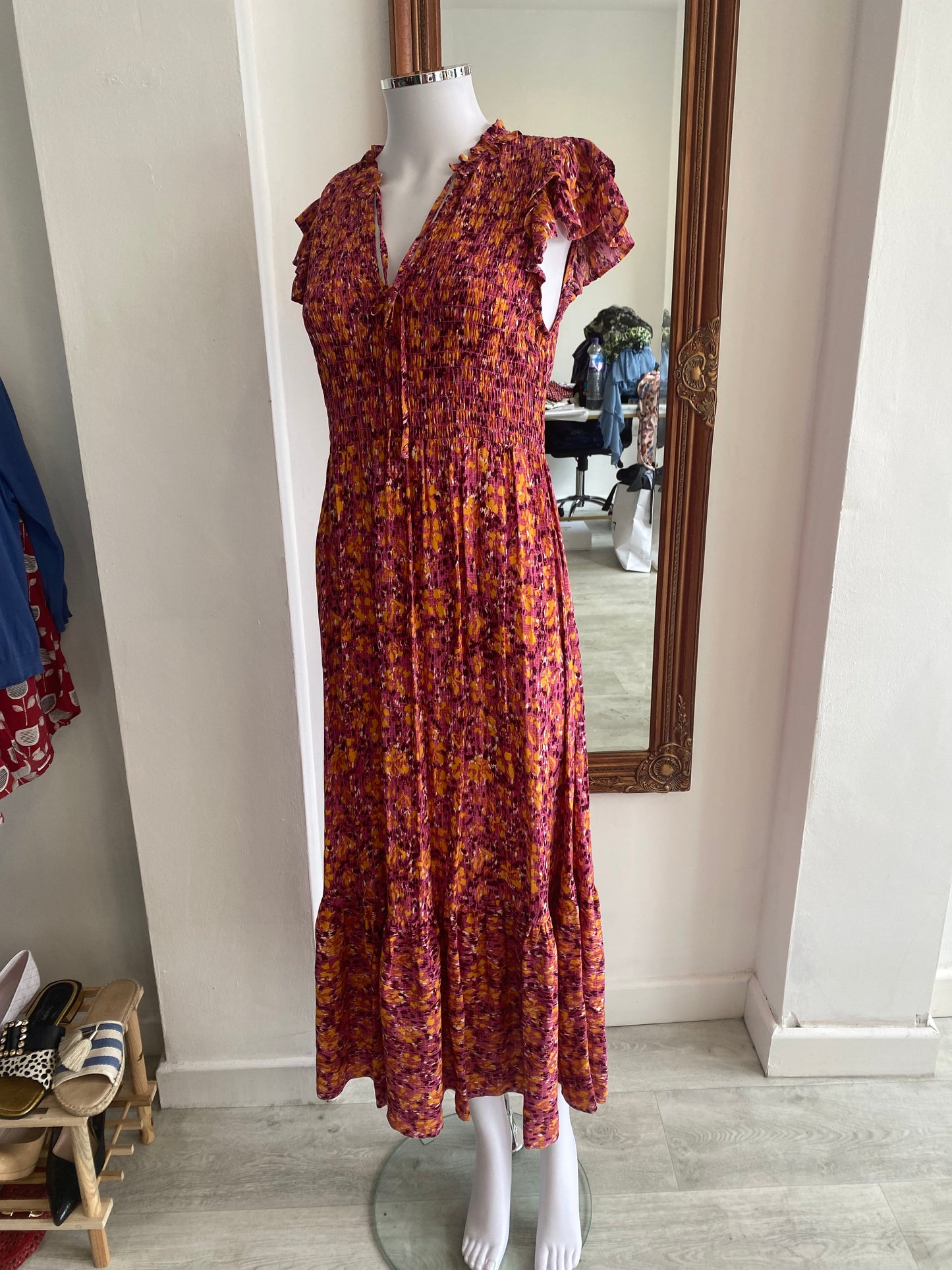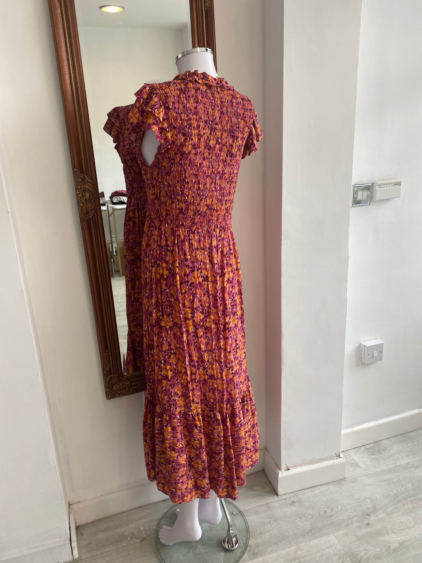 Oliver Bonas Pink and Mustard Patterned Maxi Dress Size 8 Fits like a 8-12