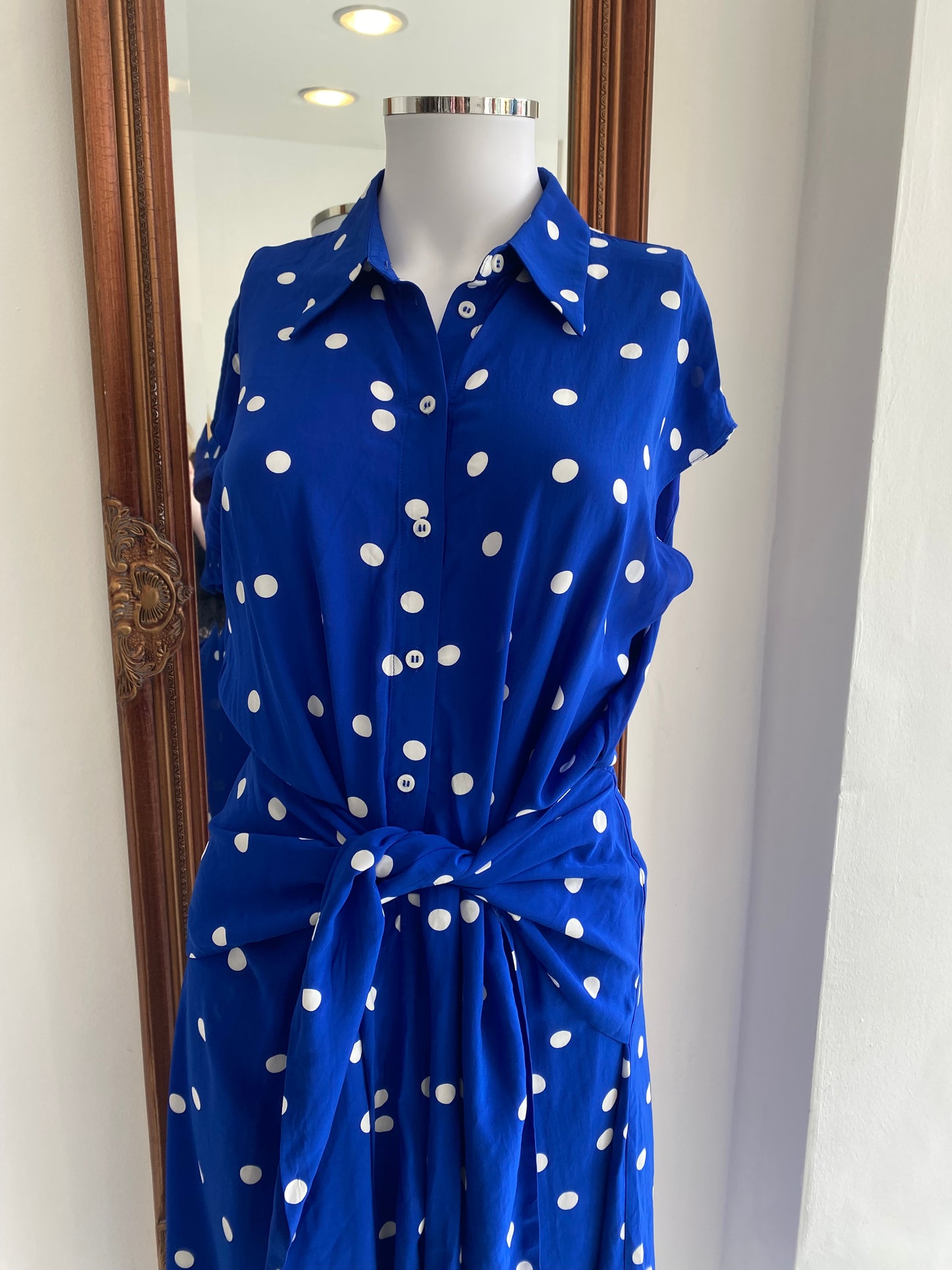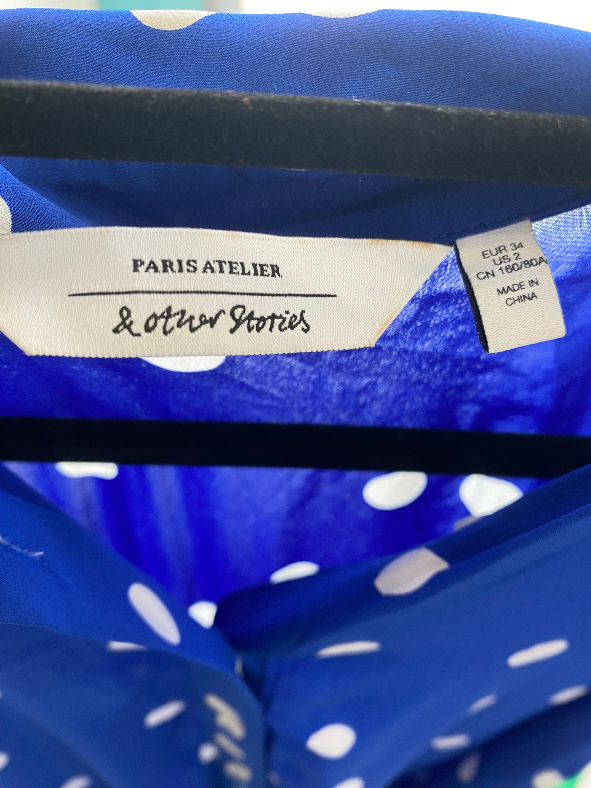 & Other Stories Blue Polka Dot Midi Dress size 8