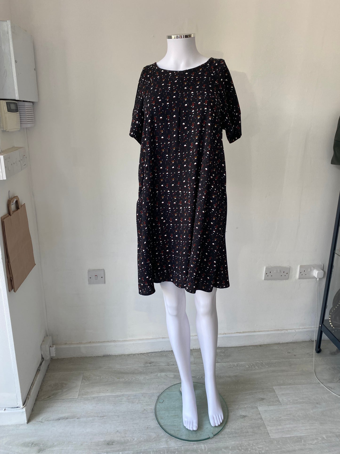 This dress has a beautiful print. It’s perfect for everyday or work. It’s a size 10.