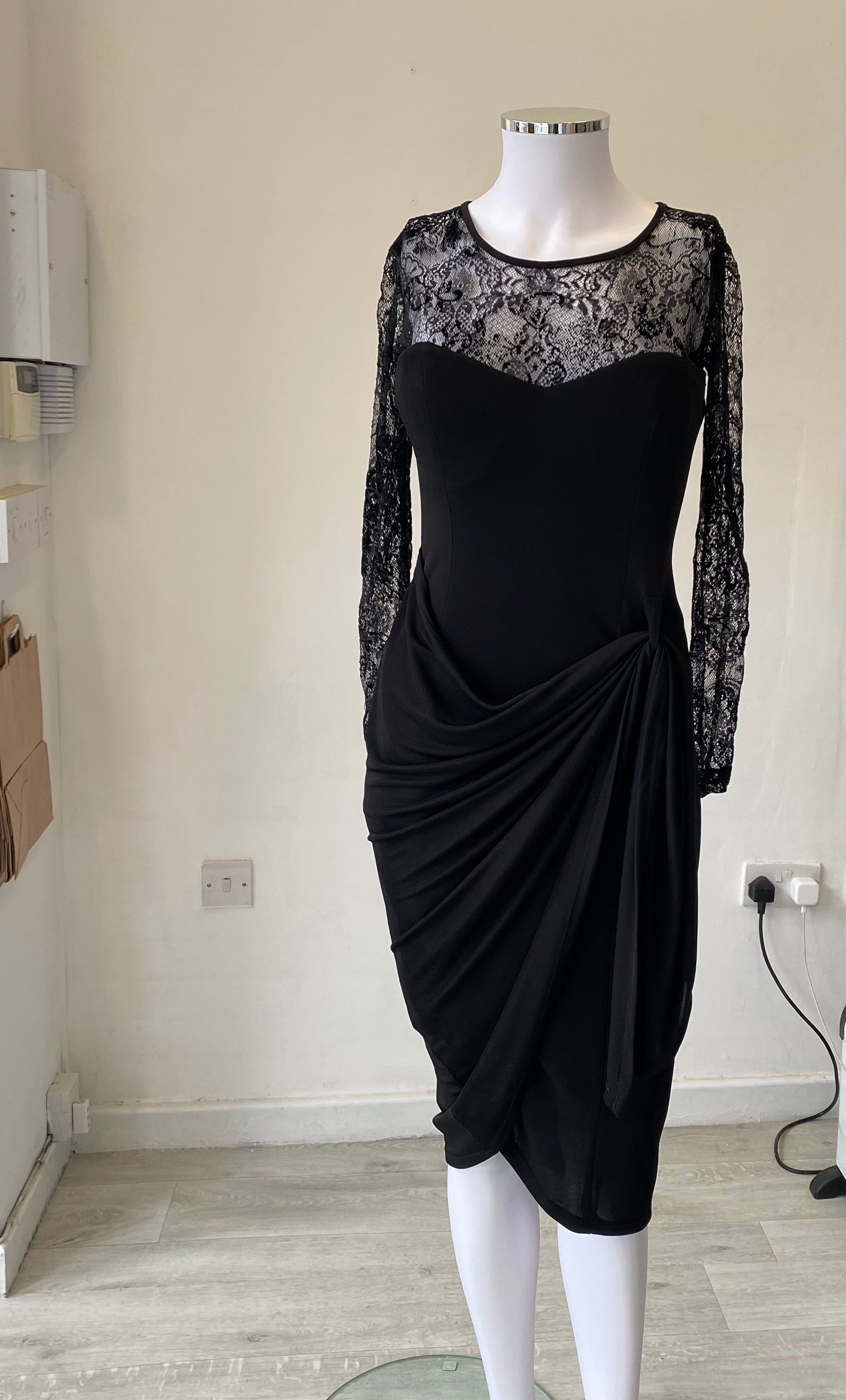 This dress is in great condition. It has beautiful detailing at the front and lace sleeves.