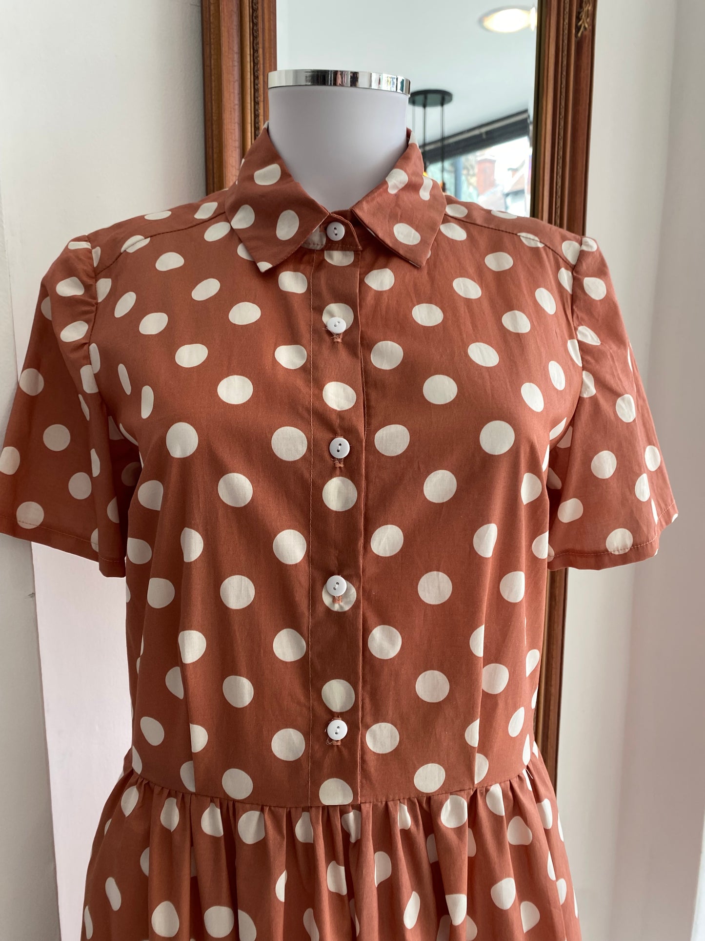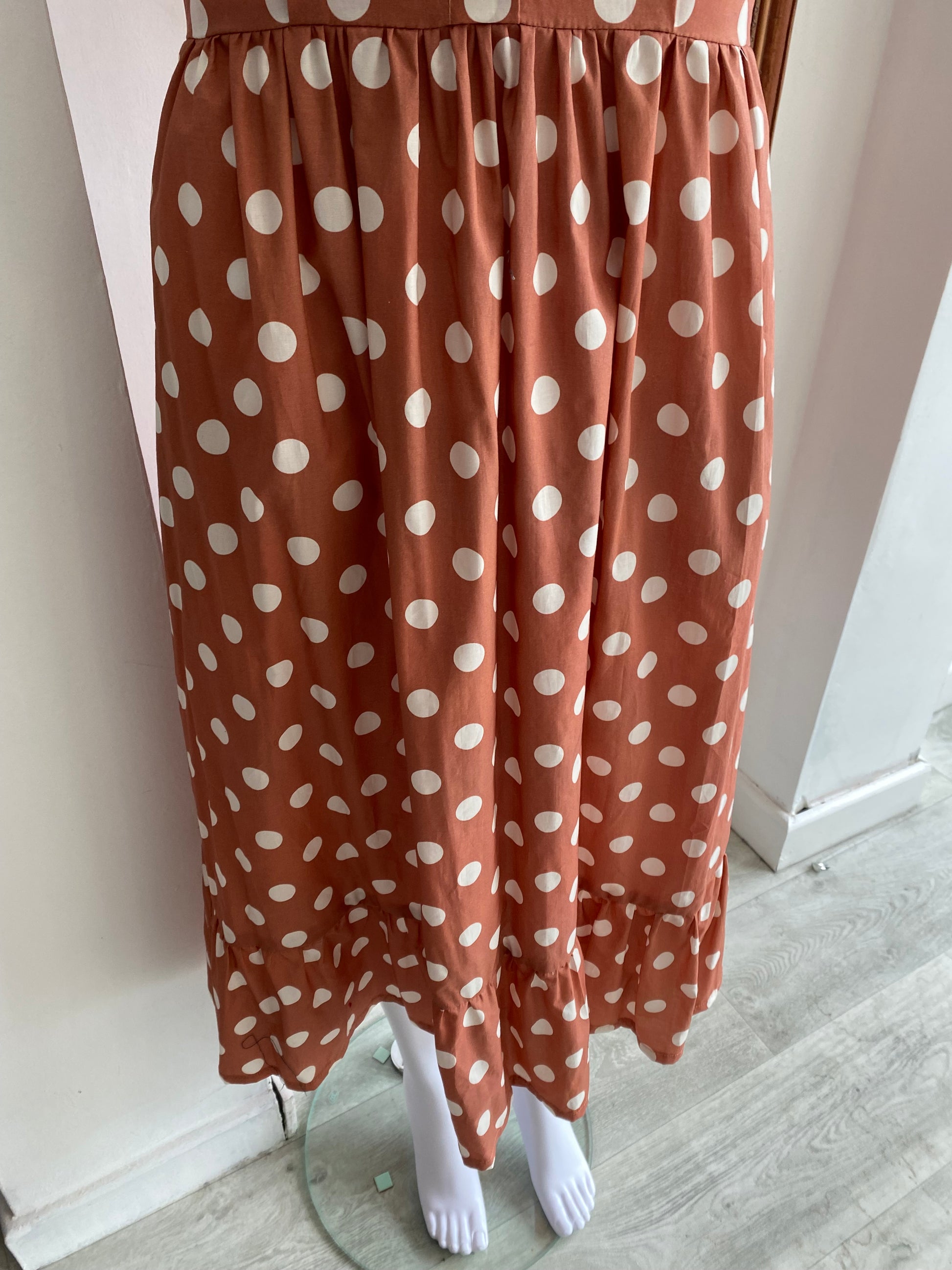 Plum and Pigeon Brown Polka Dot Maxi Dress Size 12