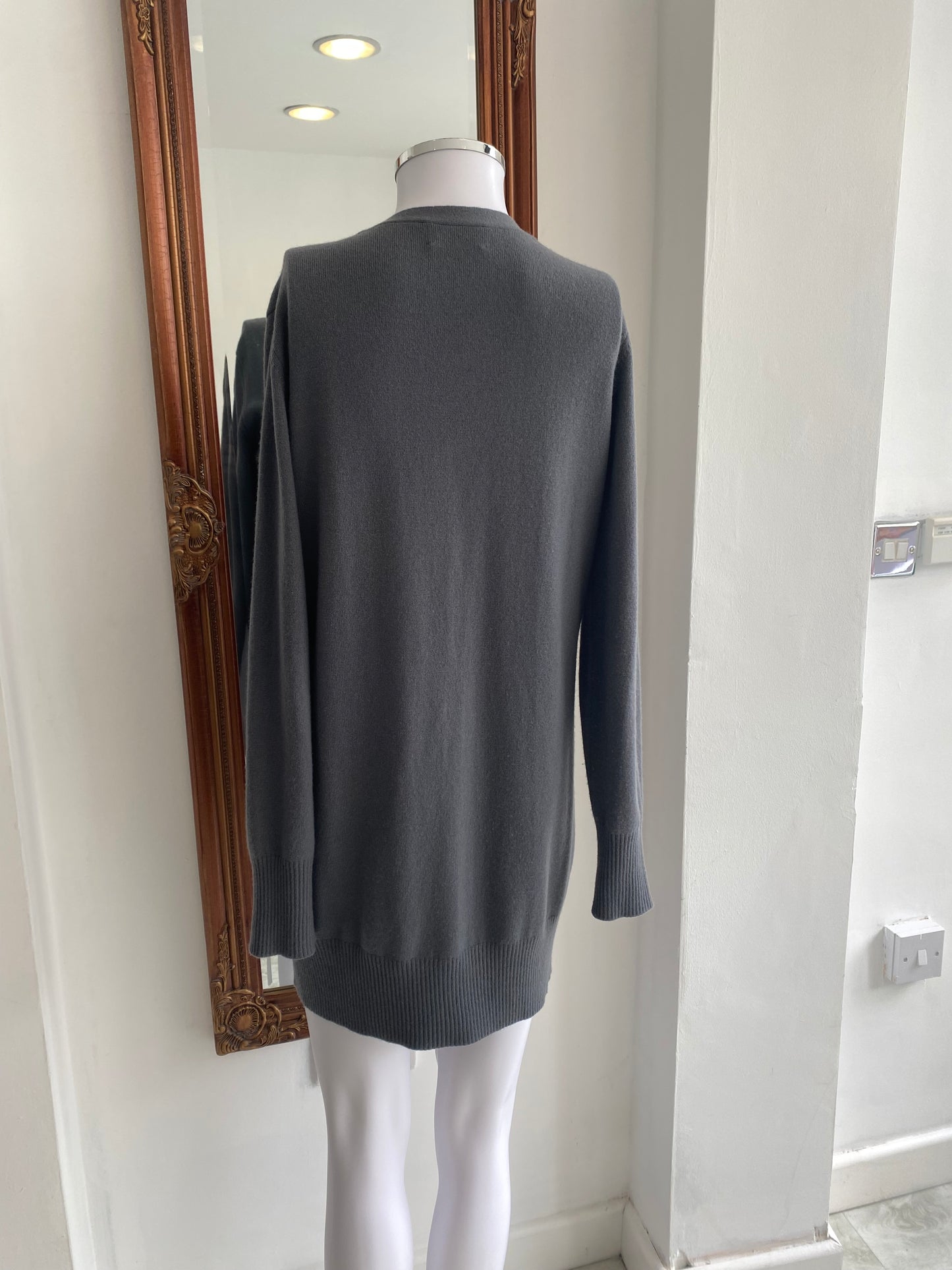This cardigan is made from 100% cashmere and is a long style cardigan. It has been worn with some bobbling, but otherwise good condition.