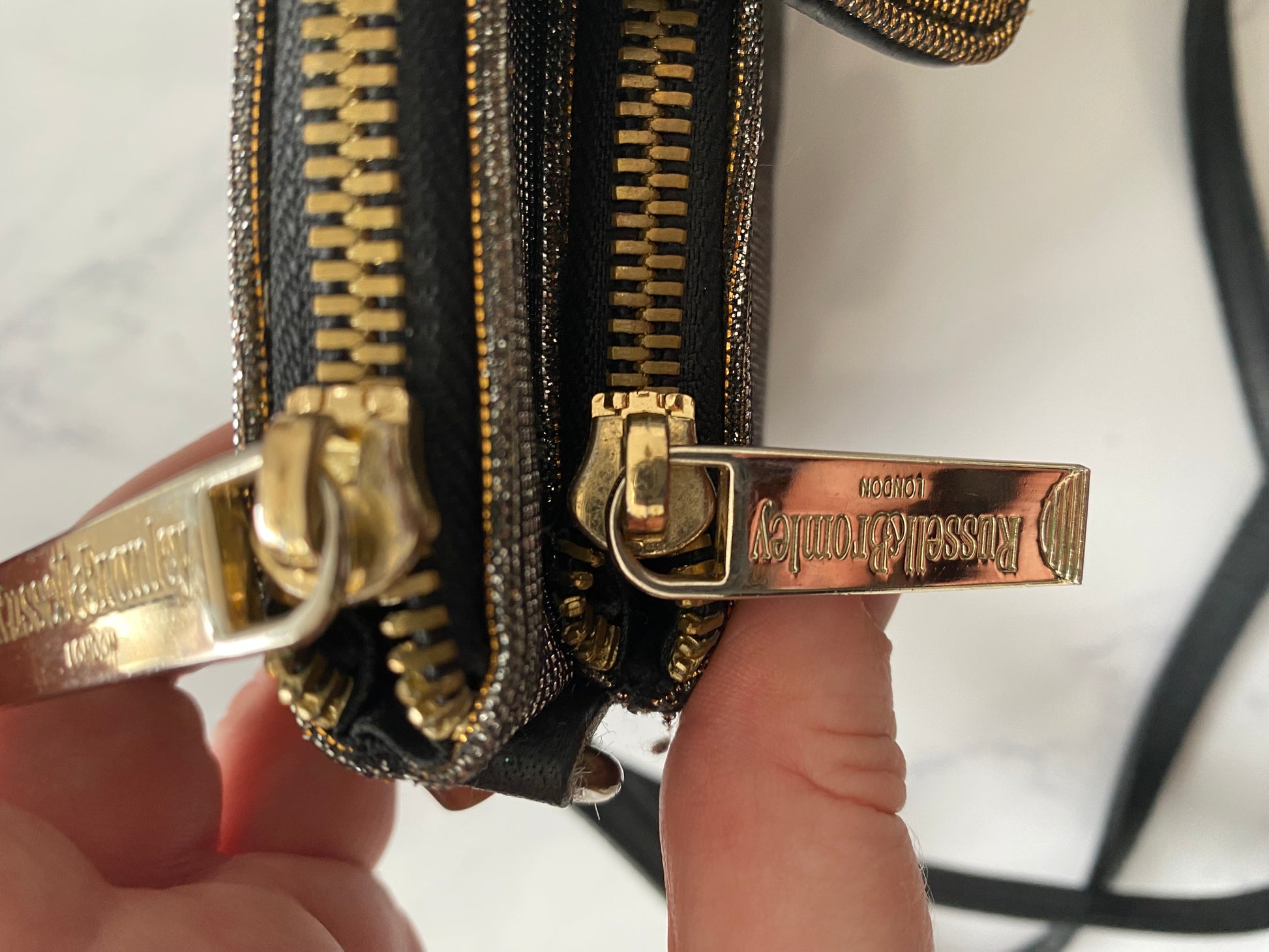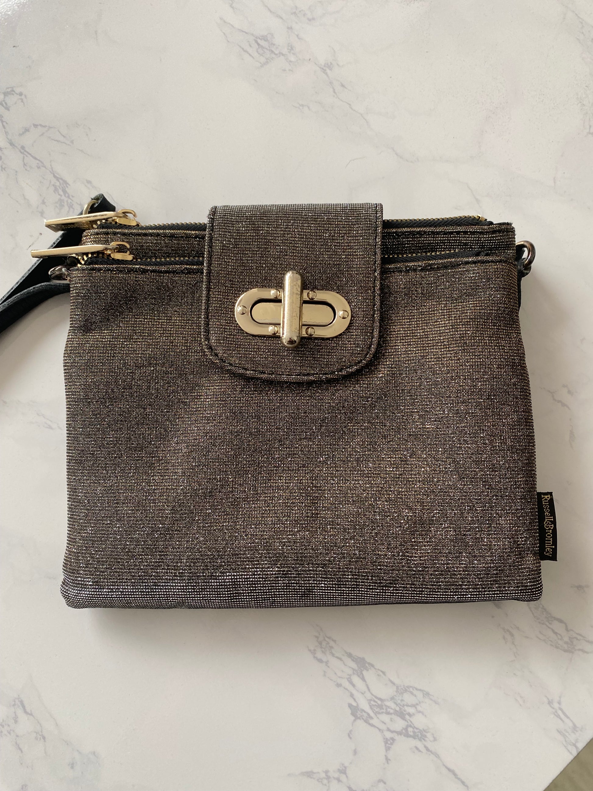 Russell and Bromley Gold Shimmer Crossbody Handbag with Dust Bag