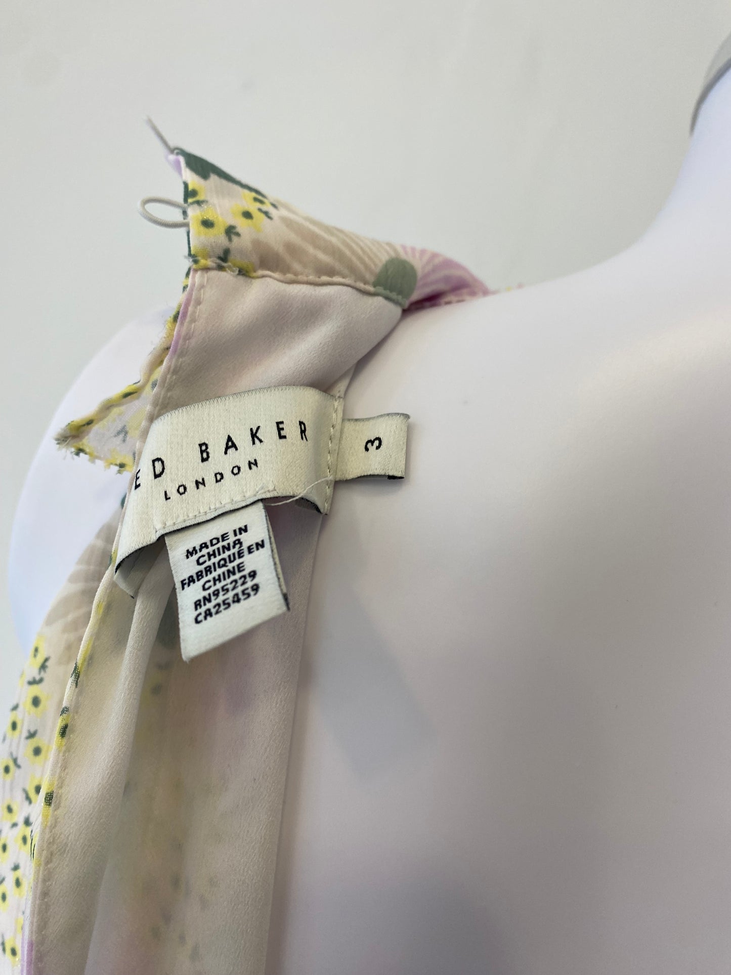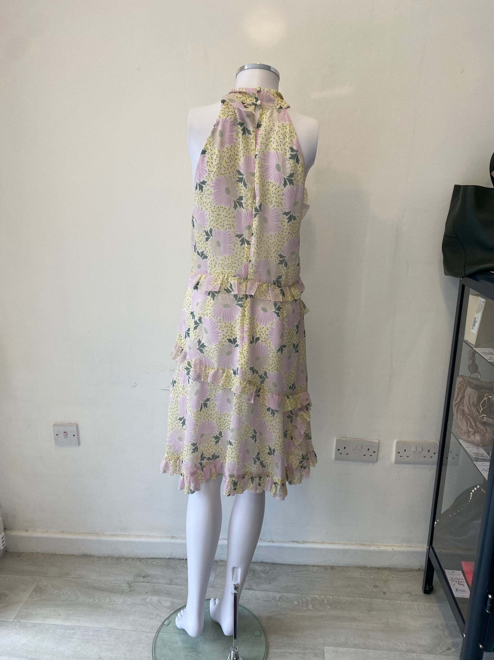 Beautiful light fabric dress with a lovely floral pattern. Ties around the neck. Lightly worn and in excellent condition. Will fit a size 12.