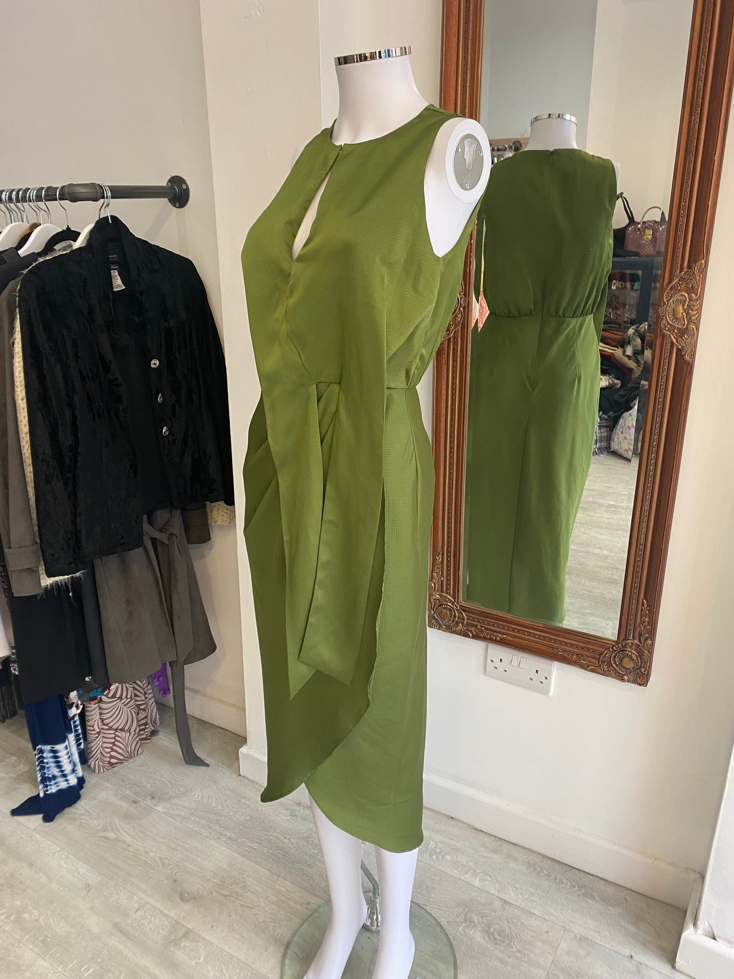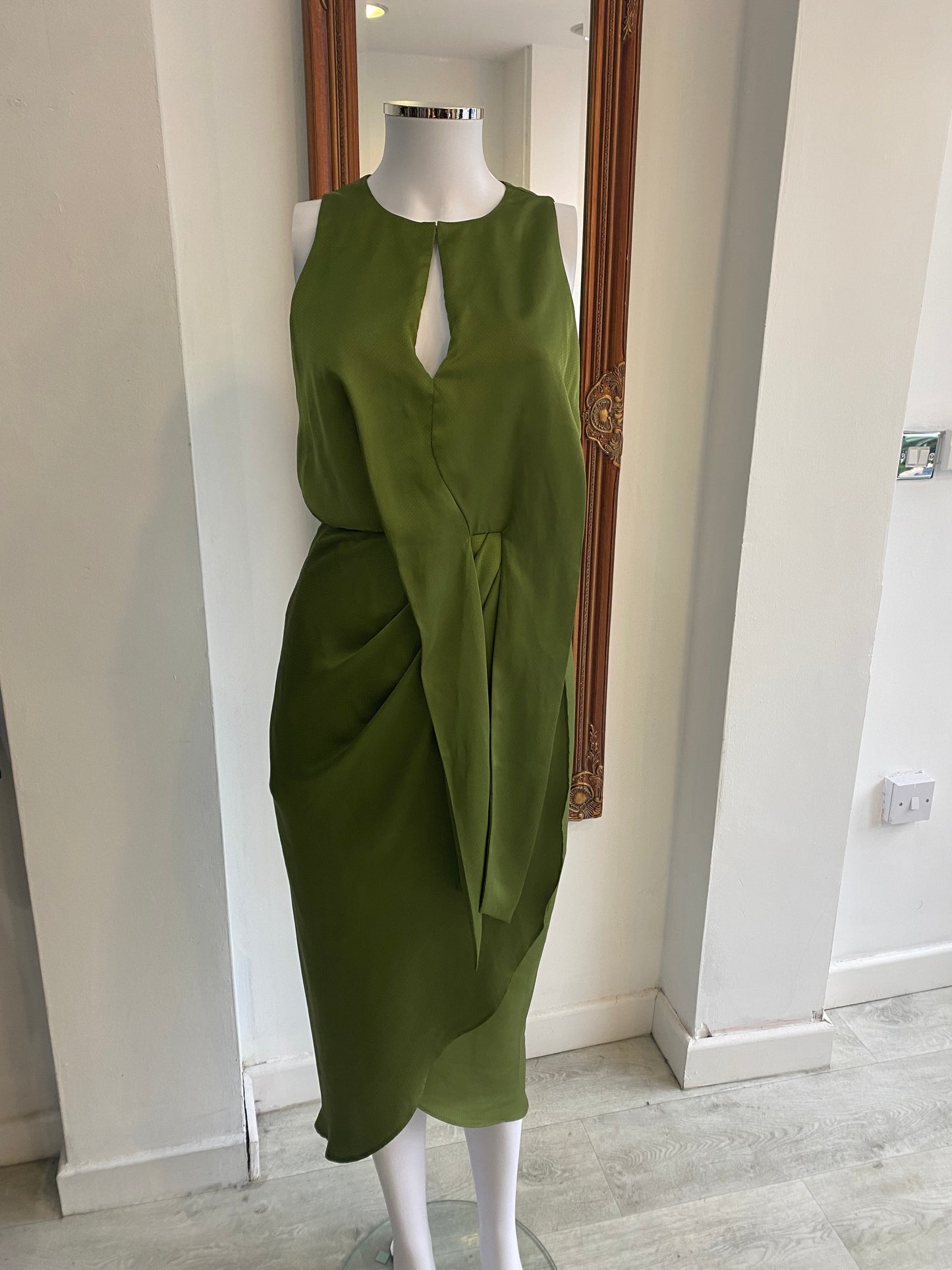 Lovely dress with a subtle spot print and ruffle detailing. A Ted Baker size 0, which is a size 6. True to size.
