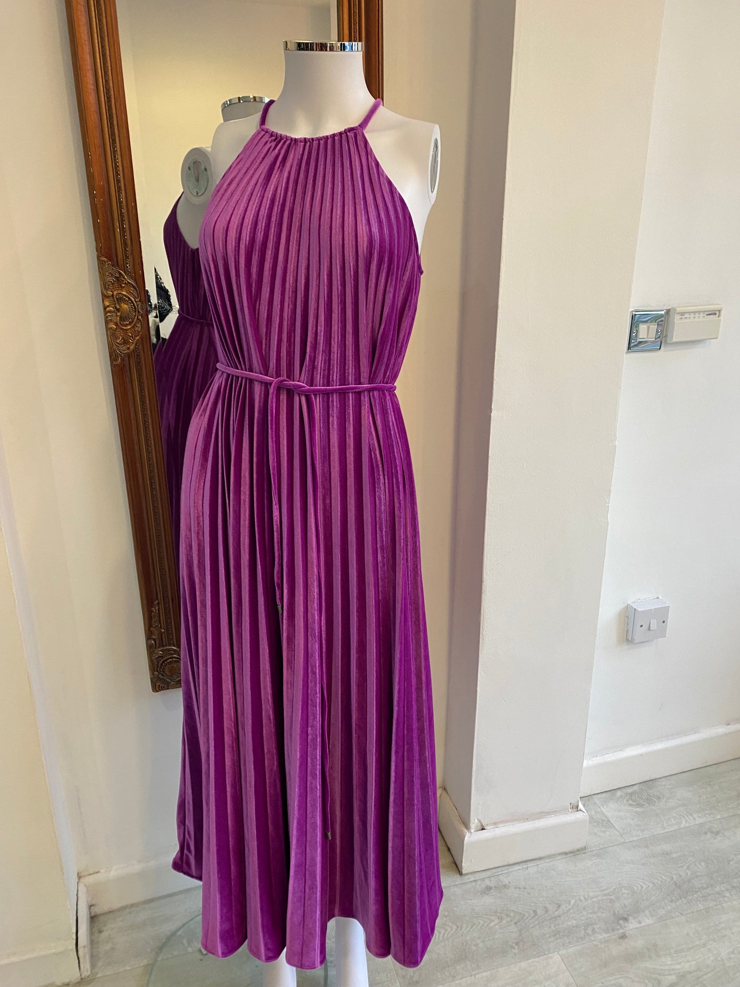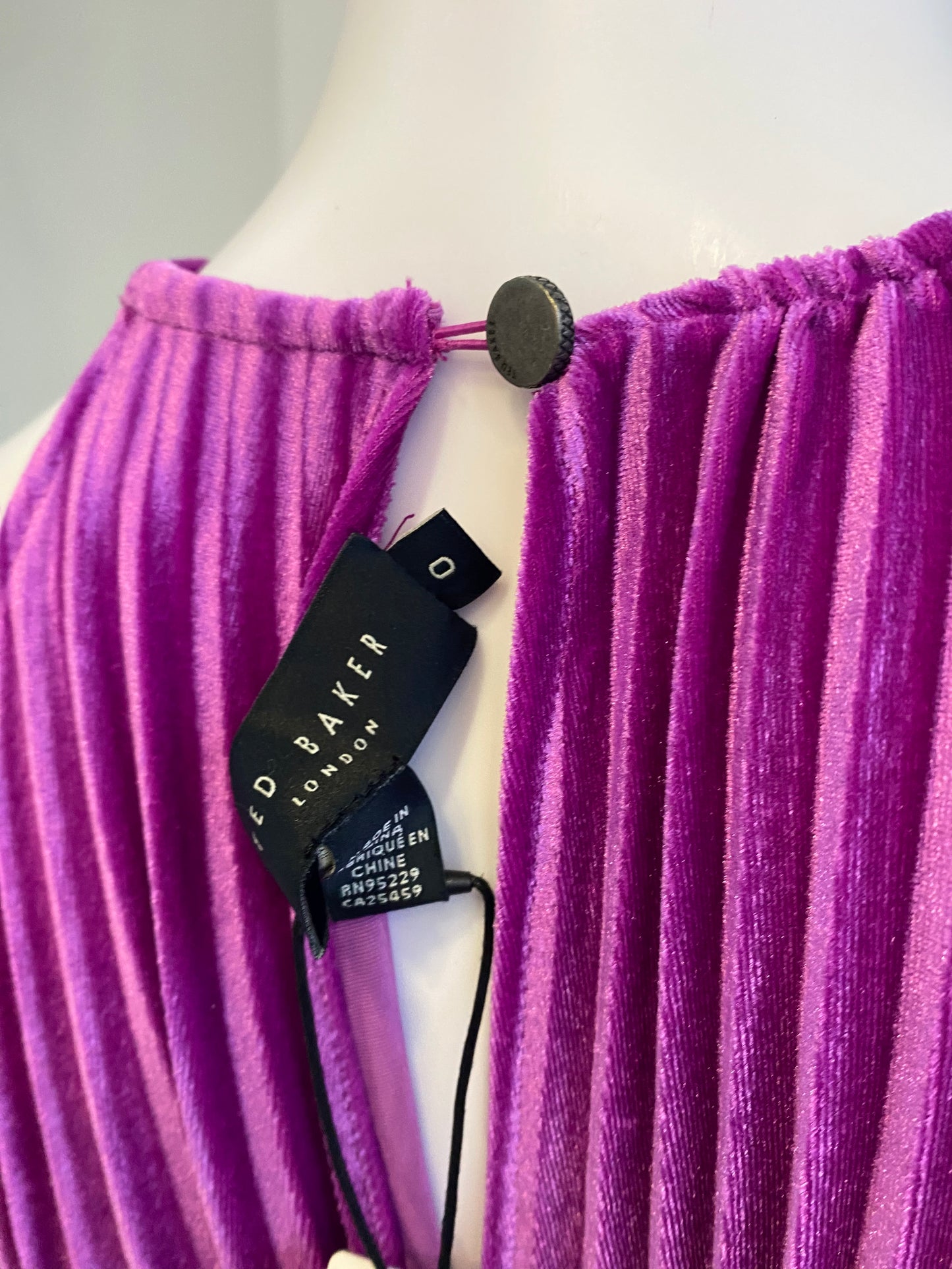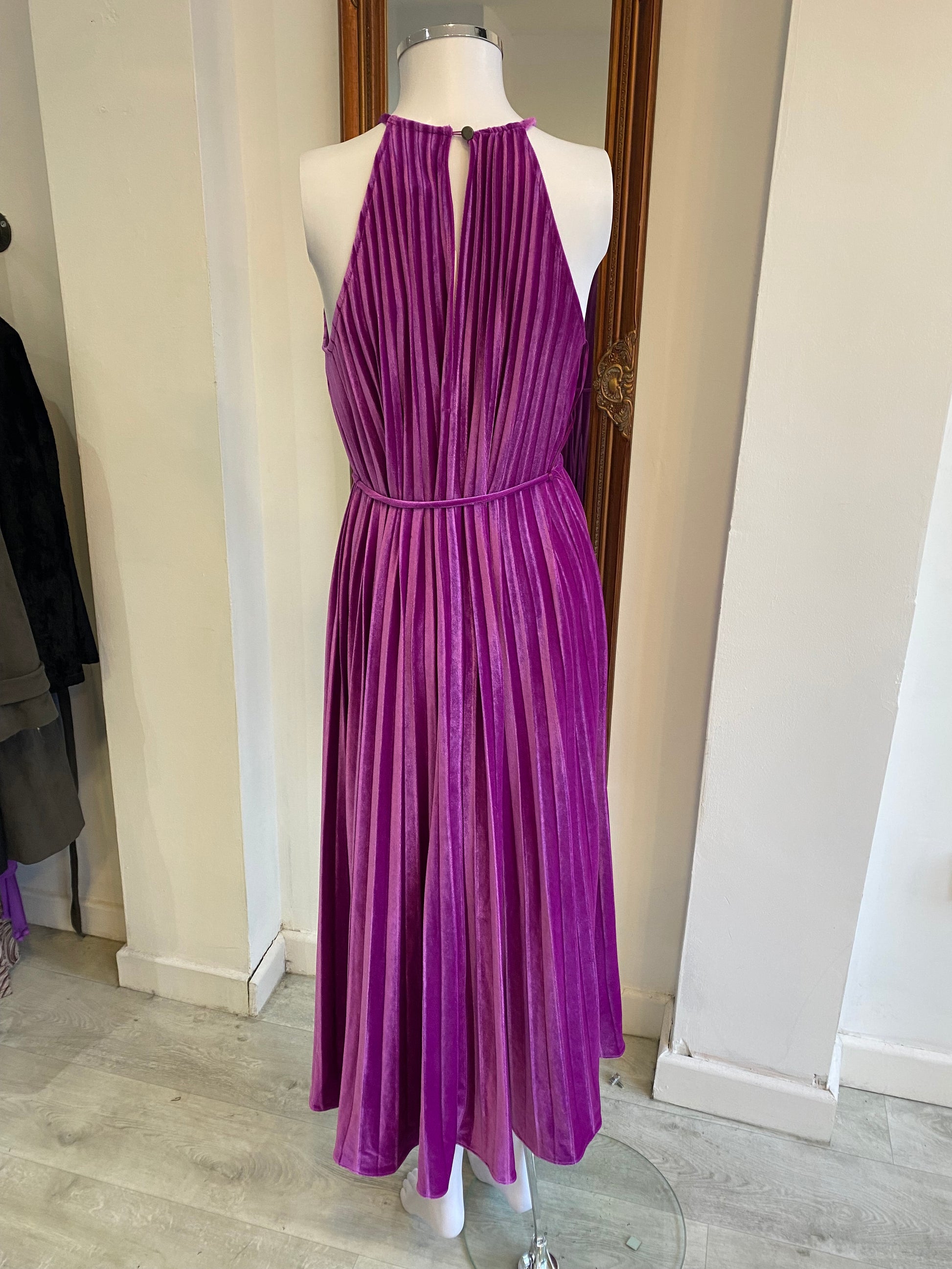 Ted Baker Kassaih Dress Purple Velvet Pleated Size 8
