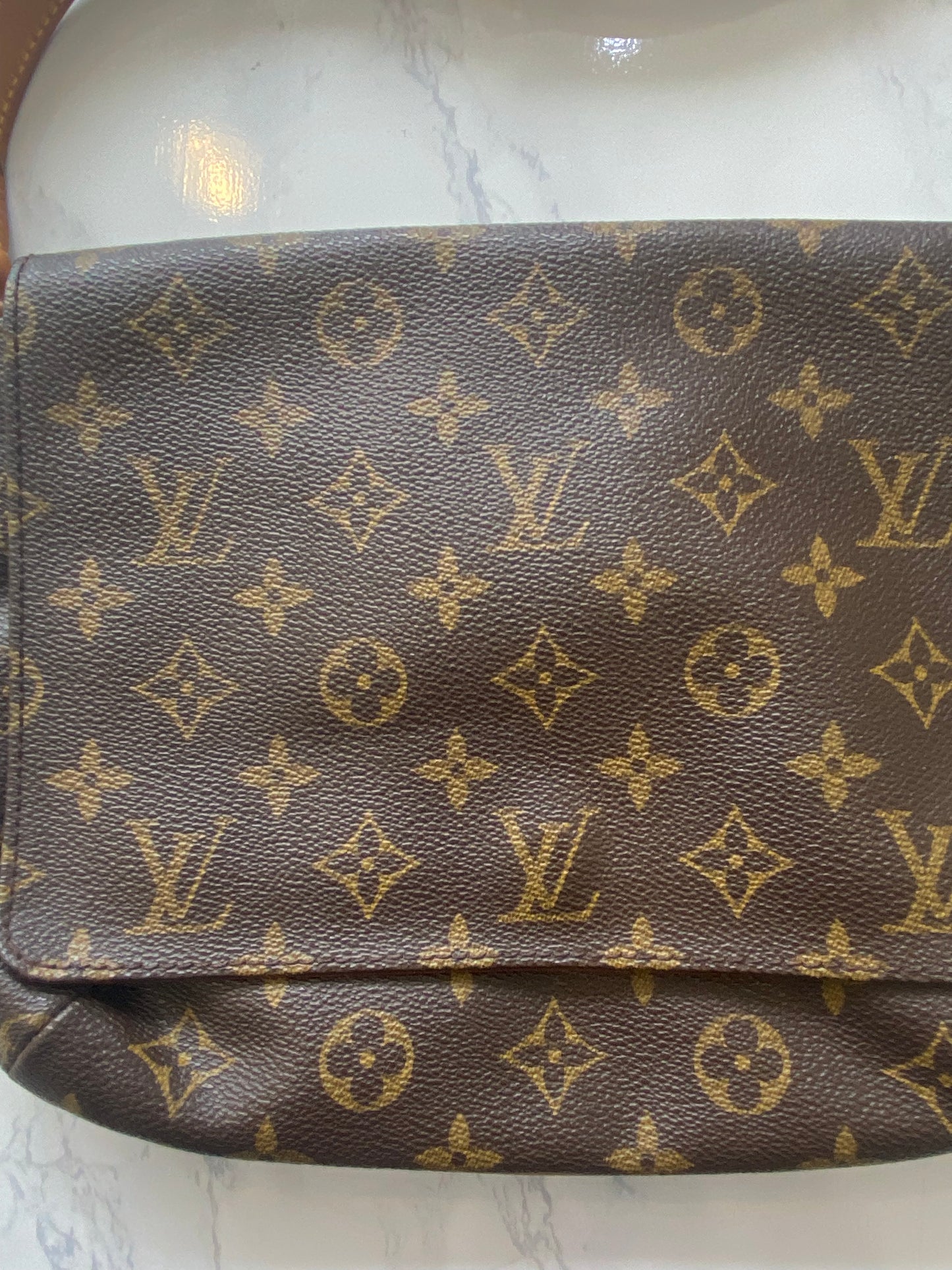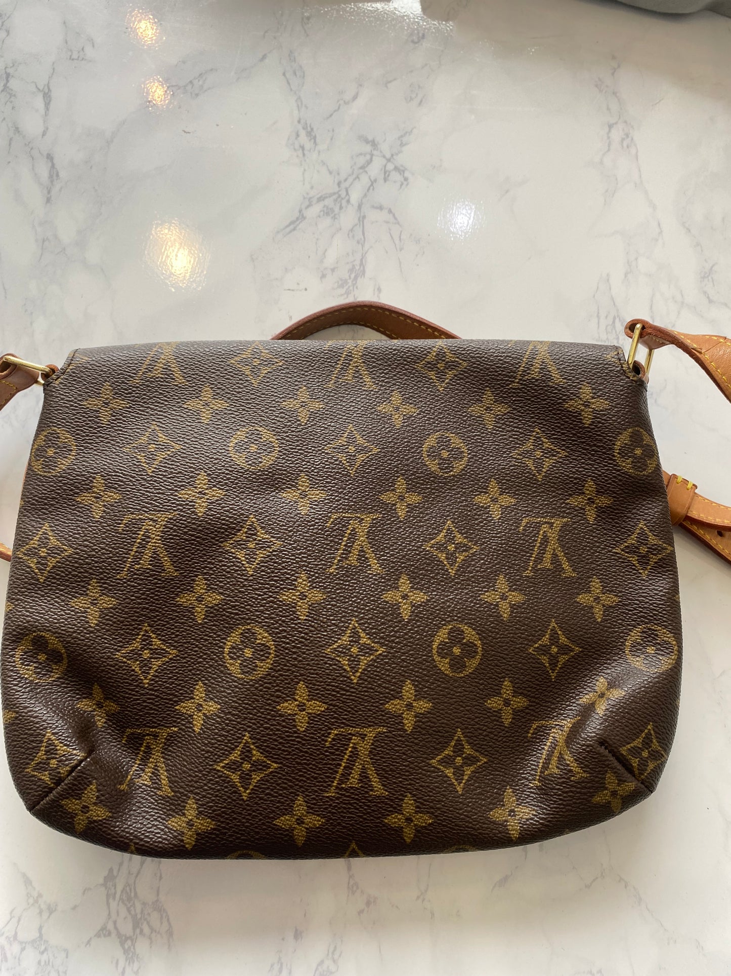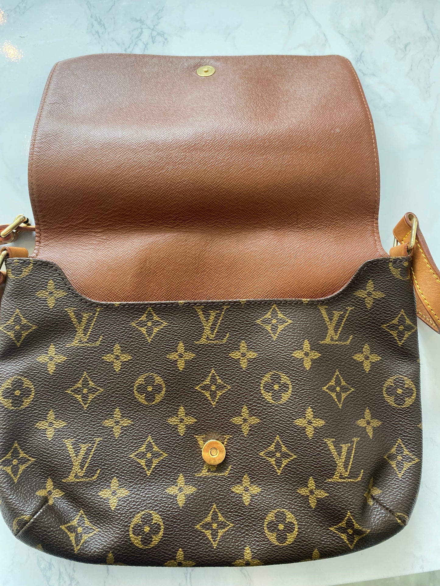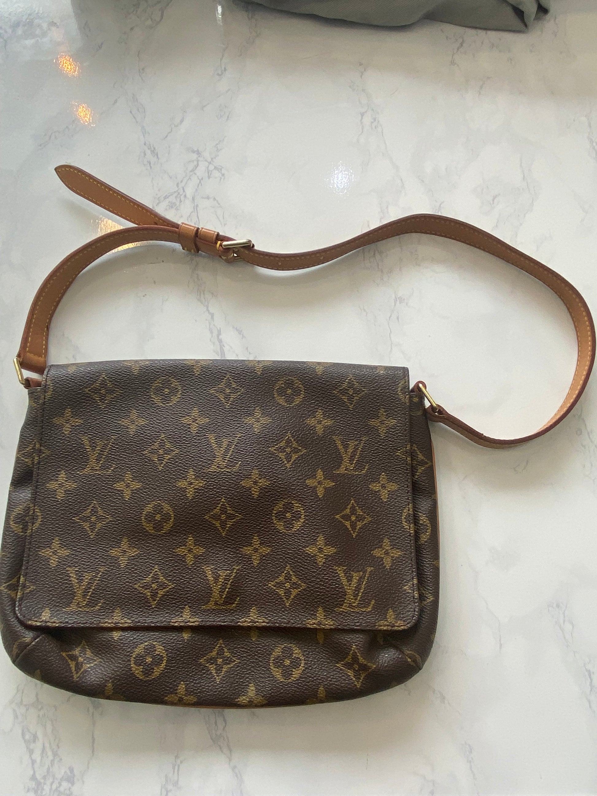 This is a beautiful handbag, preloved Louis Vuitton Musette Tango which has been very well looked after, aside from a few marks inside as pictured and a faint pen mark on the inside of the flap. The leather has a light patina.