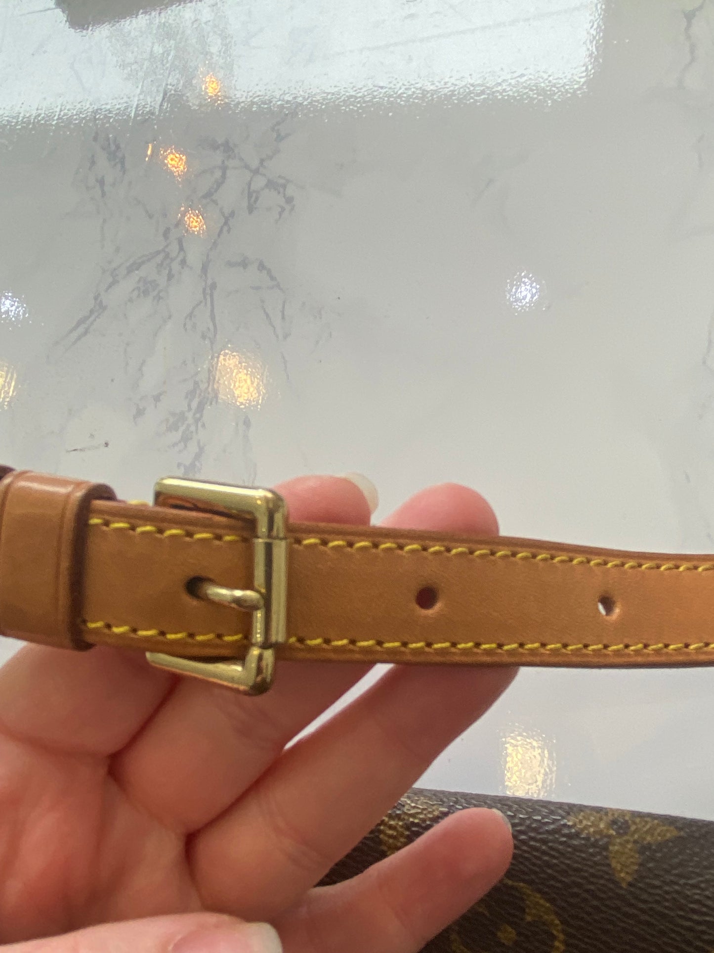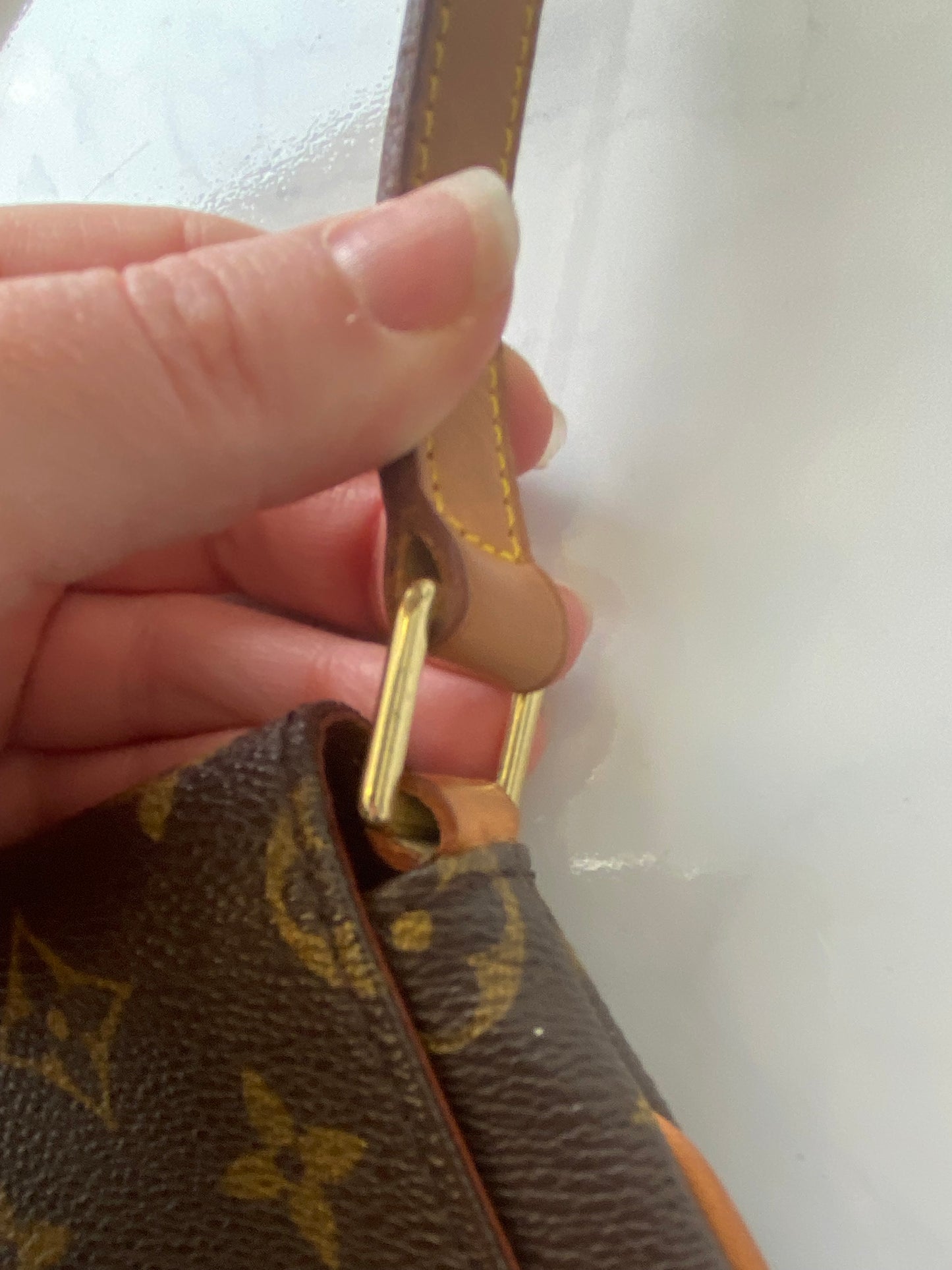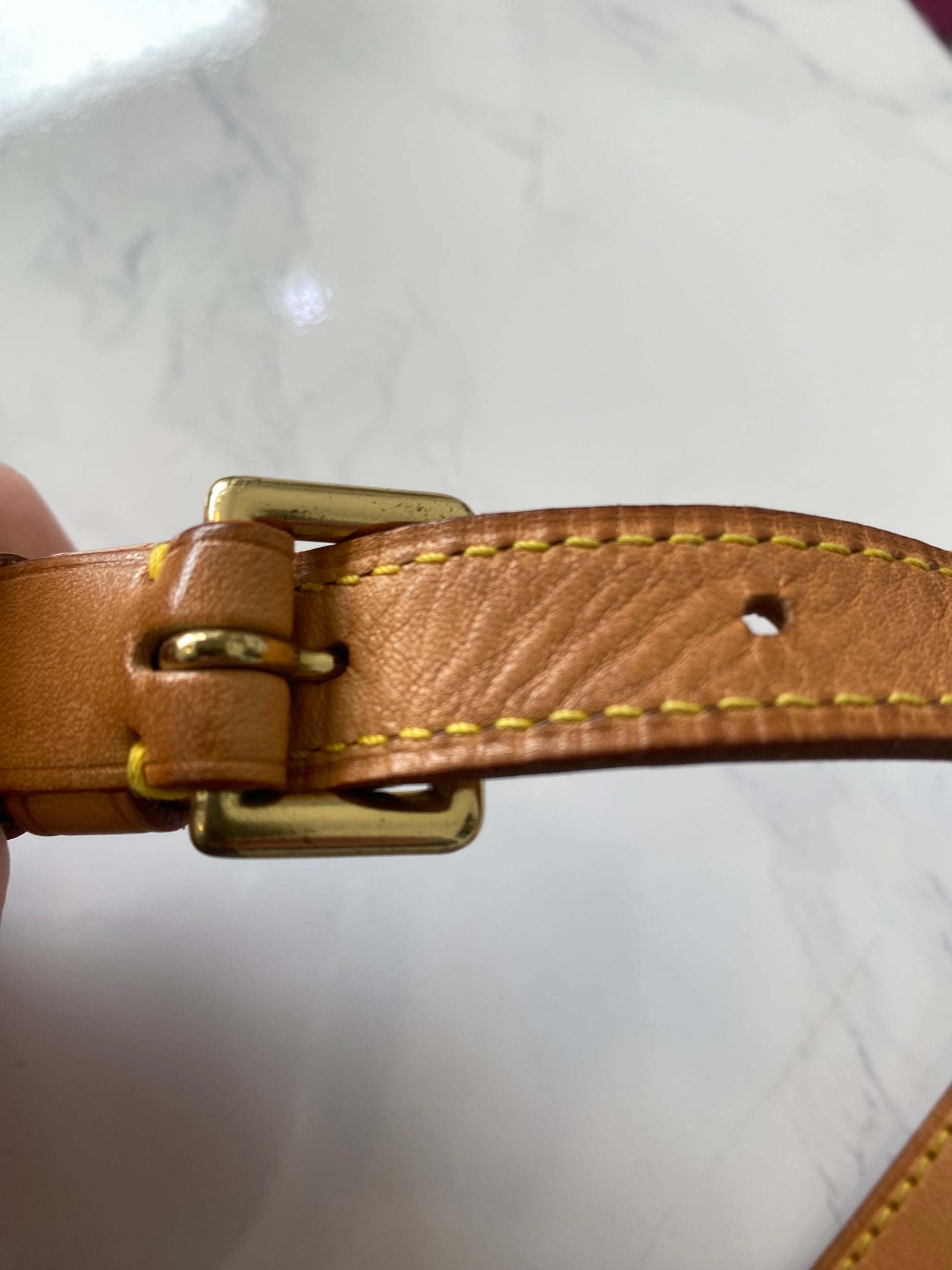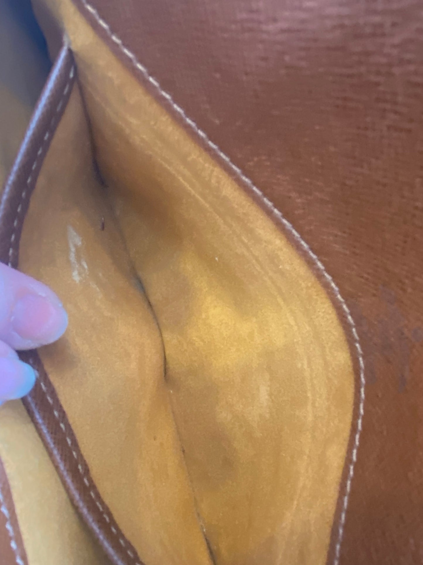 This is a beautiful handbag, preloved Louis Vuitton Musette Tango which has been very well looked after, aside from a few marks inside as pictured and a faint pen mark on the inside of the flap. The leather has a light patina.