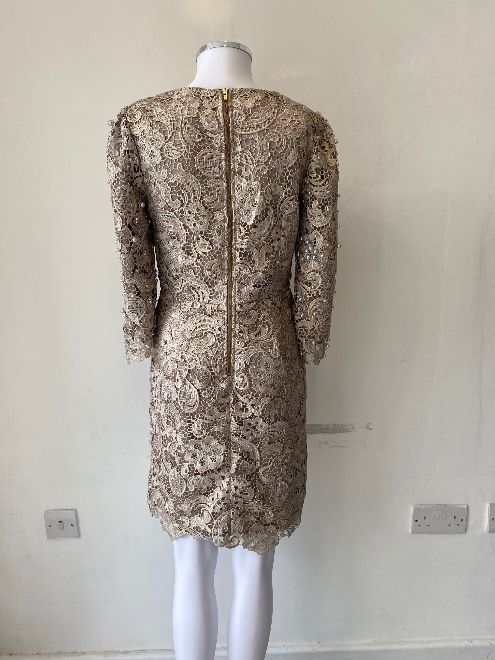 Monsoon Champagne Lace Dress with Pearl Beading Size 8