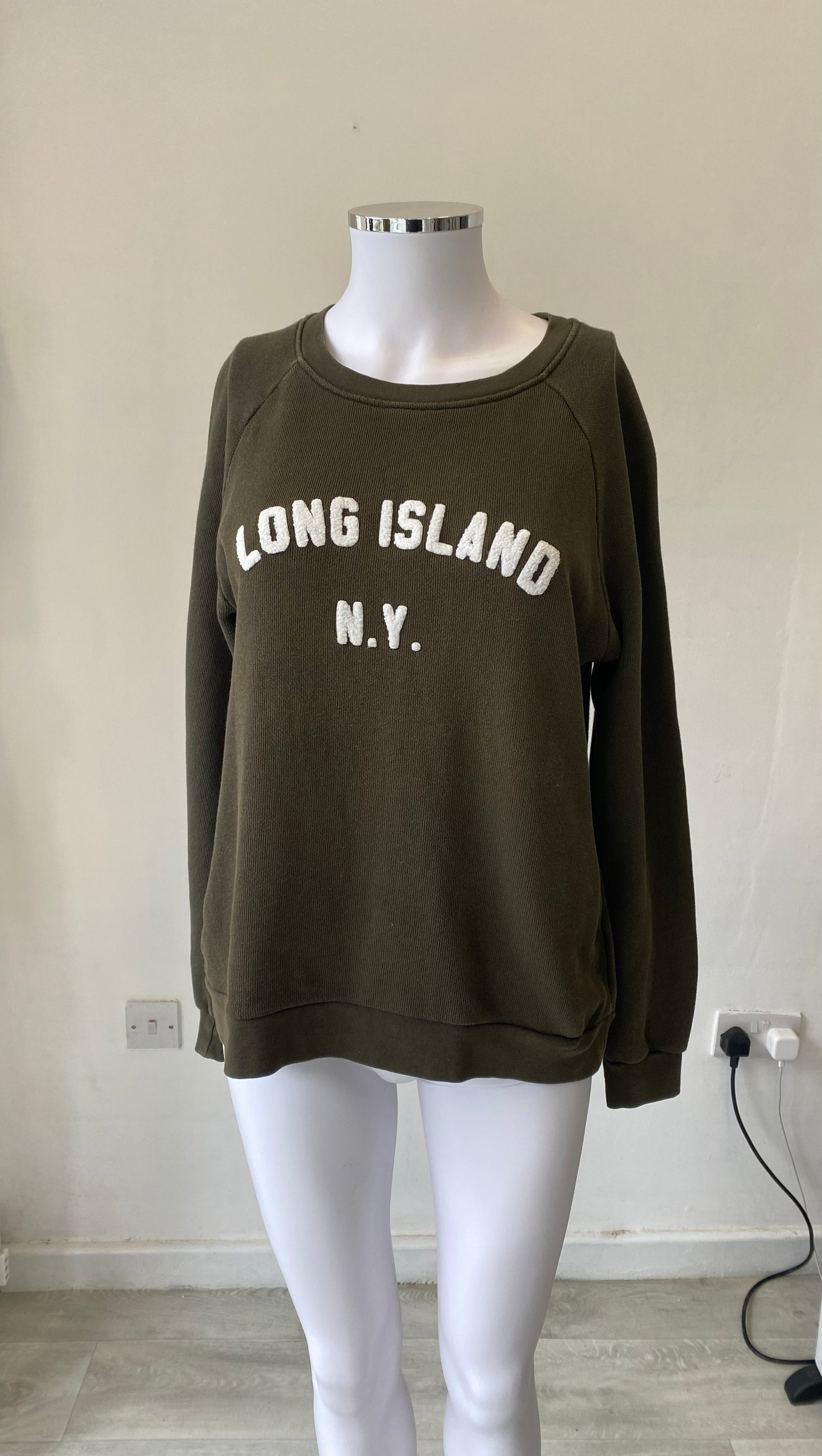 Whistles Khaki Slogan Sweatshirt Long Island Size 8-10