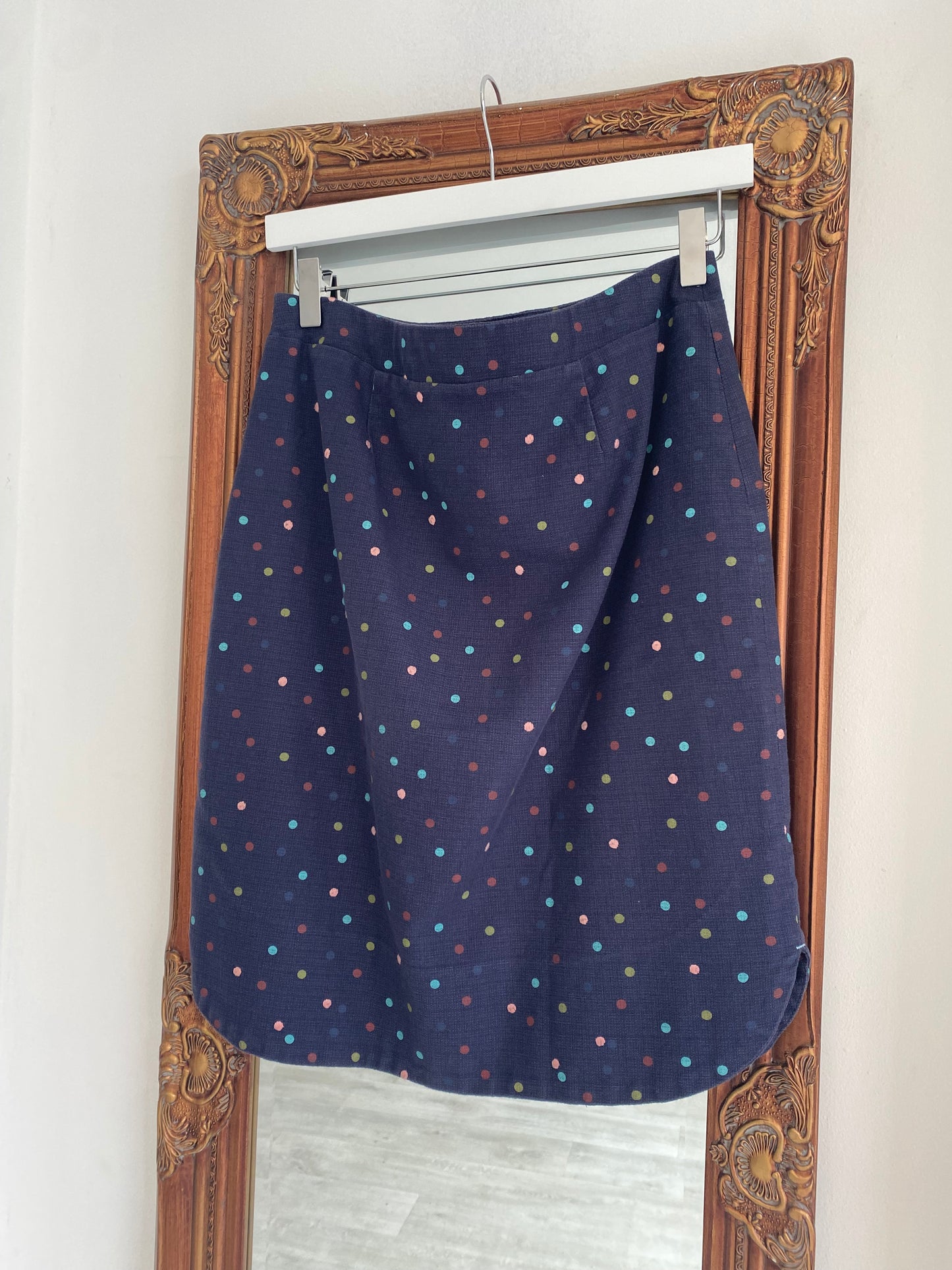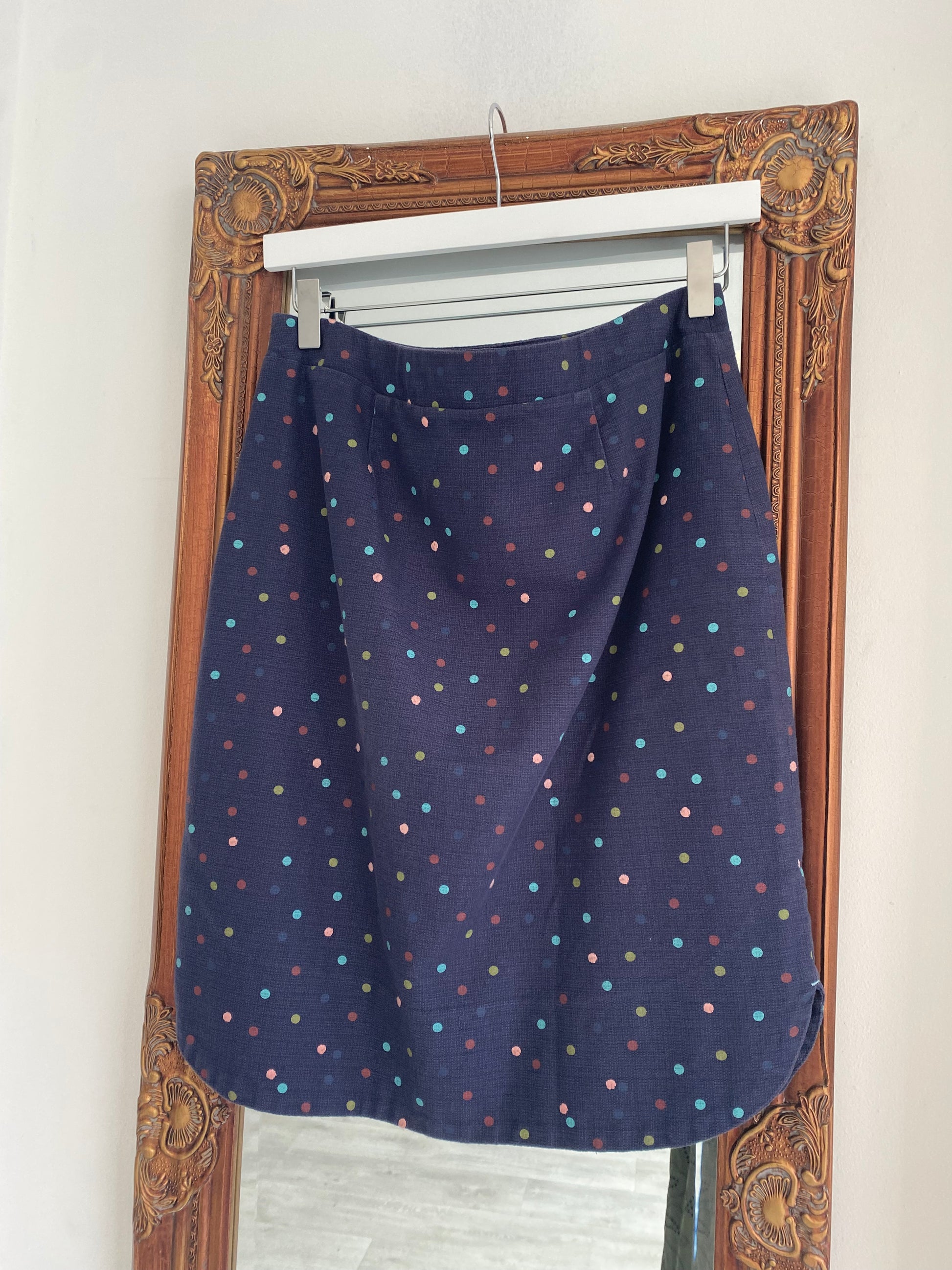 This linen feel fabric is perfect for summer and this skirt features a lovely spot print design.