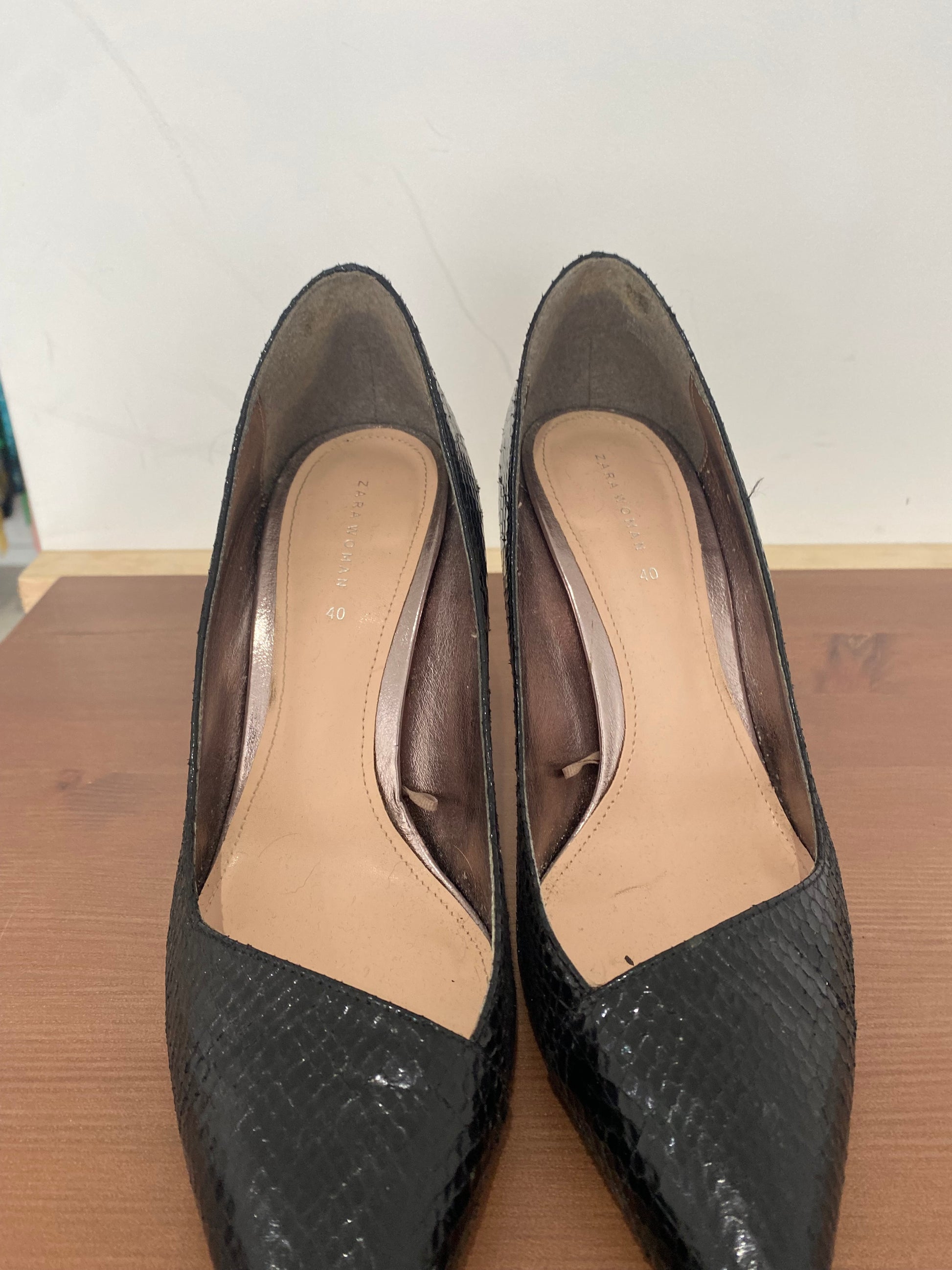 These lovely shoes have been lightly worn. They have a mock croc style and are cut beautifully at the front.