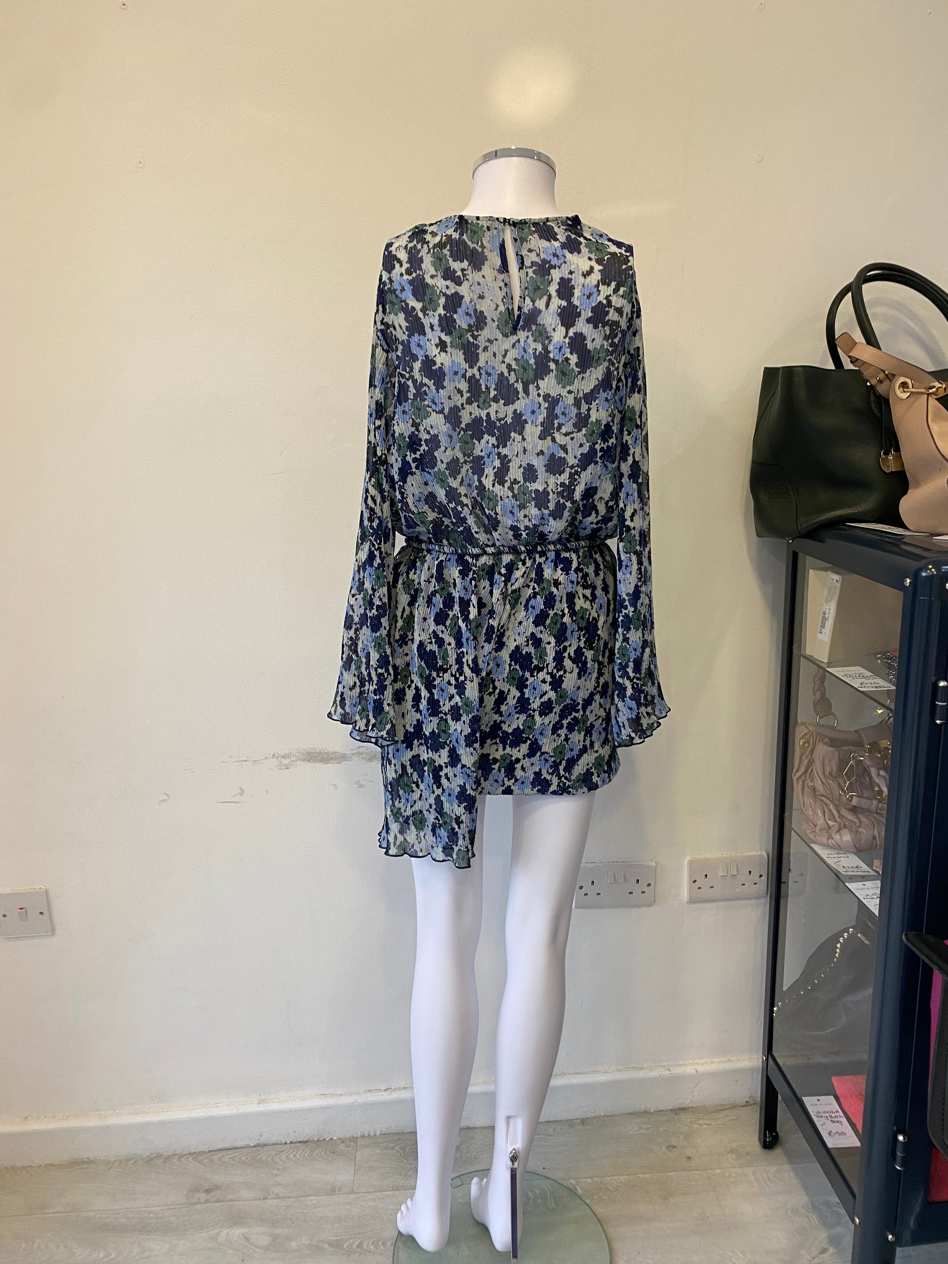 Zara Blue Floral Pleated Belted Dress Size Medium 12