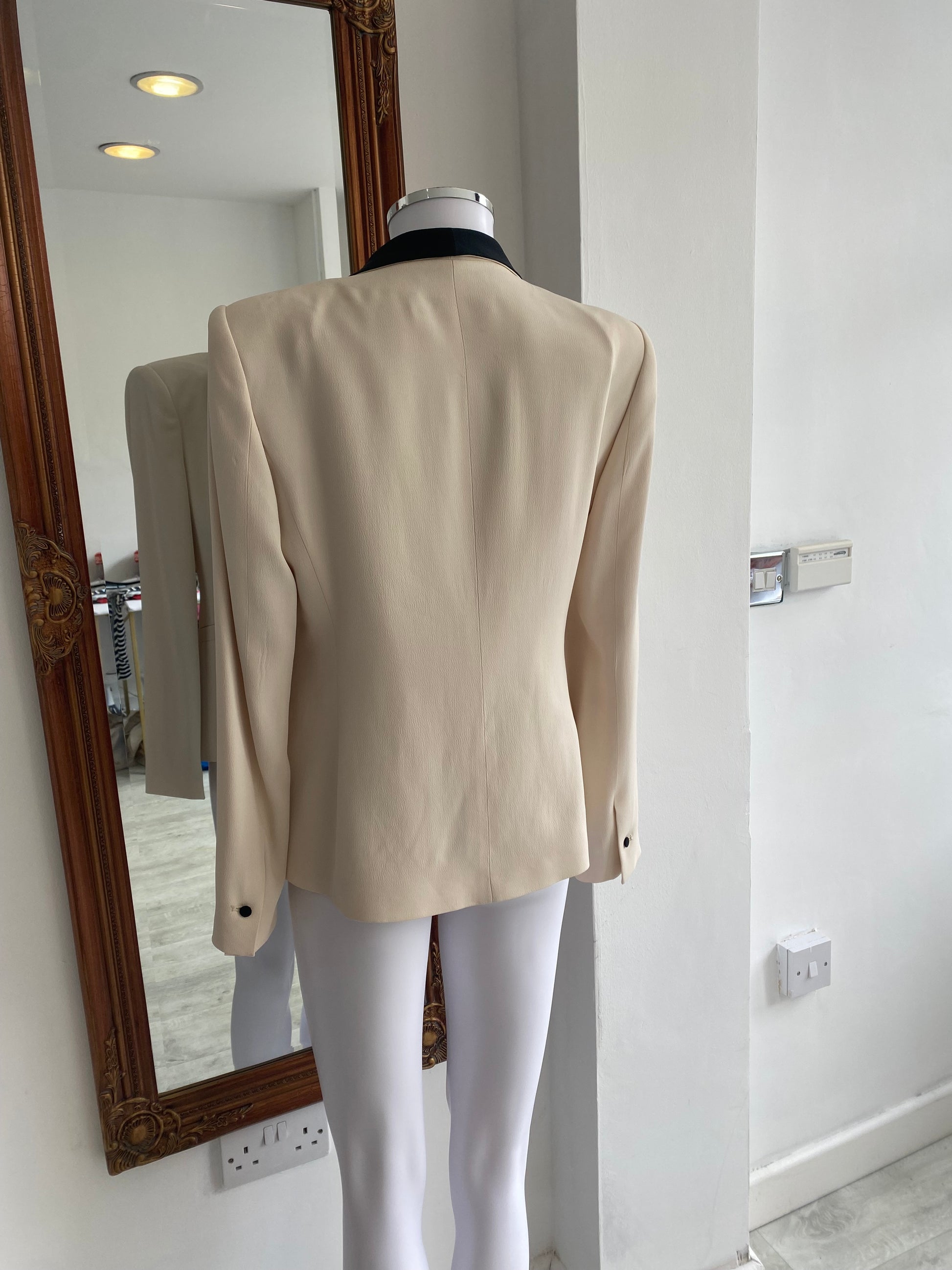Zara Cream Tuxedo Jacket with Black Trim Size Medium 10-12
